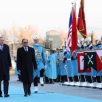 Konuk Malezya Başbakanı Enver İbrahim’in içinde bulunduğu makam aracını Cumhurbaşkanlığı Külliyesi’nin önündeki caddede karşılayan süvariler, Enver İbrahim’e protokol kapısına kadar eşlik etti. Cumhurbaşkanı Erdoğan, Enver İbrahim’i Cumhurbaşkanlığı Külliyesi’nin ana giriş kapısında karşıladı. Erdoğan ve Enver İbrahim’in tören alanındaki yerlerini almalarının ardından 21 pare top atışı eşliğinde iki ülkenin milli marşları çalındı. Enver İbrahim, Muhafız Alayı Tören Kıtası’nı ’Merhaba asker’ diyerek selamladı. Törende, tarihte kurulan 16 Türk devletini temsil eden bayraklar ve askerler de yer aldı. Heyetlerini birbirlerine takdim eden Erdoğan ve Enver İbrahim, merdivenlerde Türkiye ve Malezya bayrakları önünde gazetecilere poz verdi. Erdoğan ve İbrahim, Türkiye-Malezya Yüksek Düzeyli Stratejik İşbirliği Konseyi Birinci Toplantısı’na katılacak ve daha sonra ortak basın toplantısı düzenleyecek.