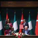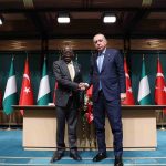 Cumhurbaşkanı Recep Tayyip Erdoğan, Nijerya Cumhurbaşkanı Bola Ahmed Tinubu ile düzenlediği ortak basın toplantısında, “Bugünkü görüşmelerimizde 5 milyar dolar ticaret hacmi hedefimize bağlılığımızı teyit ettik, atılması gereken adımları ele aldık. Ayrıca Nijerya’daki yatırımlarımızı destekleyecek fırsatları görüştük” dedi.