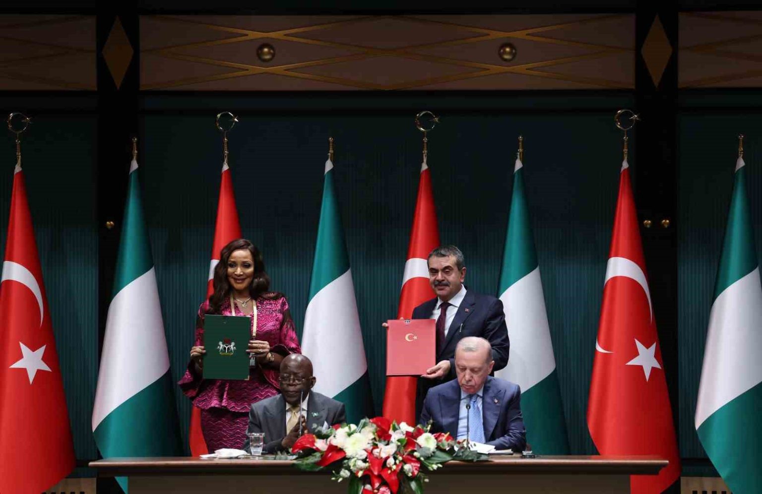 “Türkiye Cumhuriyeti Kültür ve Turizm Bakanlığı Yurtdışı Türkler ve Akraba Topluluklar Başkanlığı ile Diasporadaki Nijeryalılar Komisyonu Arasında Diaspora Siyasası Alanında İşbirliği Mutabakat Zaptı. Türkiye Cumhuriyeti Hükümeti ile Nijerya Federal Cumhuriyeti Hükümeti Arasında Medya ve İletişim Alanında Mutabakat Zaptı. Türkiye Cumhuriyeti ile Nijerya Federal Cumhuriyeti Yükseköğretim Alanında İşbirliğine İlişkin Mutabakat Zaptı. Türkiye Cumhuriyeti Helal Akreditasyon Kurumu ile Nijerya Ulusal Akreditasyon Sistemi Arasında Helal Kalite Altyapısı Alanında Mutabakat Zaptı. Ekonomi ve Ticaret Ortak Komitesi (JETCO) Tesis Eden Ortak Bildiri. Türkiye Cumhuriyeti Hükümeti ile Nijerya Federal Cumhuriyeti Hükümeti Arasında Askeri İşbirliği Protokolü. Türkiye Cumhuriyeti Hükümeti ile Nijerya Federal Cumhuriyeti Hükümeti Arasında Eğitim Alanında İşbirliği Anlaşması. Türkiye Cumhuriyeti Dışişleri Bakanlığı Diplomasi Akademisi ile Nijerya Federal Cumhuriyeti Dışişleri Bakanlığı Dışişleri Akademisi Arasında İşbirliği Mutabakat Zaptı. Türkiye Cumhuriyeti Aile ve Sosyal Politikalar Bakanlığı ile Nijerya Federal Cumhuriyeti Kadın İşleri Bakanlığı Arasında İşbirliğine Dair Mutabakat Zaptı.”