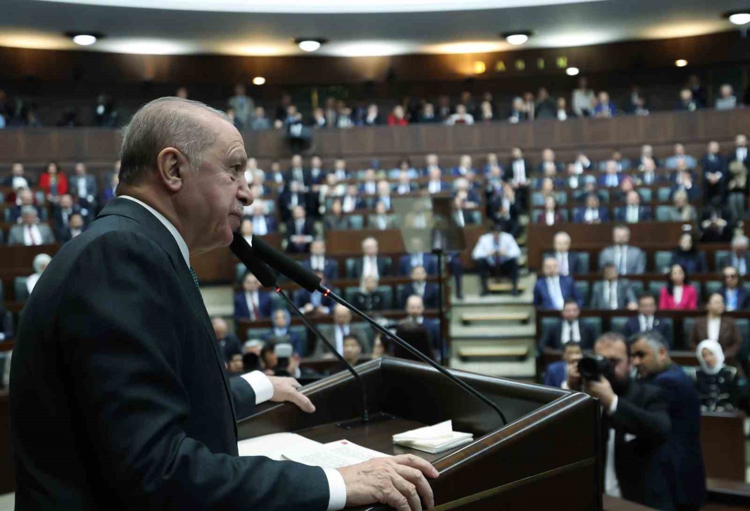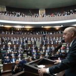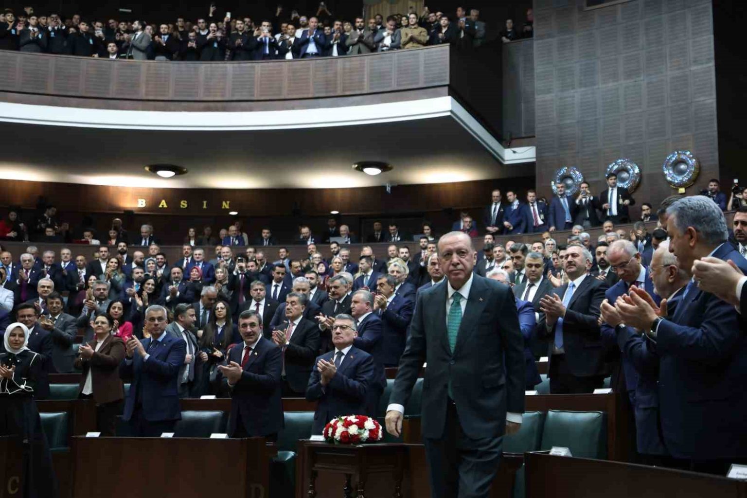 Cumhurbaşkanı Erdoğan, partisinin TBMM Grup Toplantısı’nda konuştu. Erdoğan, konuşmasına toplantının Türkiye’ye, Türk milletine ve demokrasiye hayırlara vesile olmasını dileyerek başladı. İstiklal Marşı’nın kabulünün 105’nci yıl dönümü olduğuna değinen ve milli marşın yazıldığı dönemin zorlu şartlarına dikkati çeken Erdoğan, dönemin Maarif Vekili Hamdullah Suphi Bey’in sözlerine atıfta bulunarak, “O günlerde cepheler arka arkaya çökmekteydi. Eskişehir’in sükutu, hatta Ankara’nın istilası dahi gün meselesiydi. Hükümetin Sivas’a kadar çekilmek hesabı vardı. Ordu her an Sakarya gerisine çekilmek üzereydi. Askerlerimizin maneviyatı son derece sarsılmıştı” dedi.
