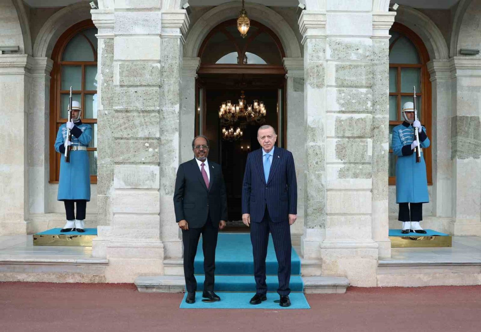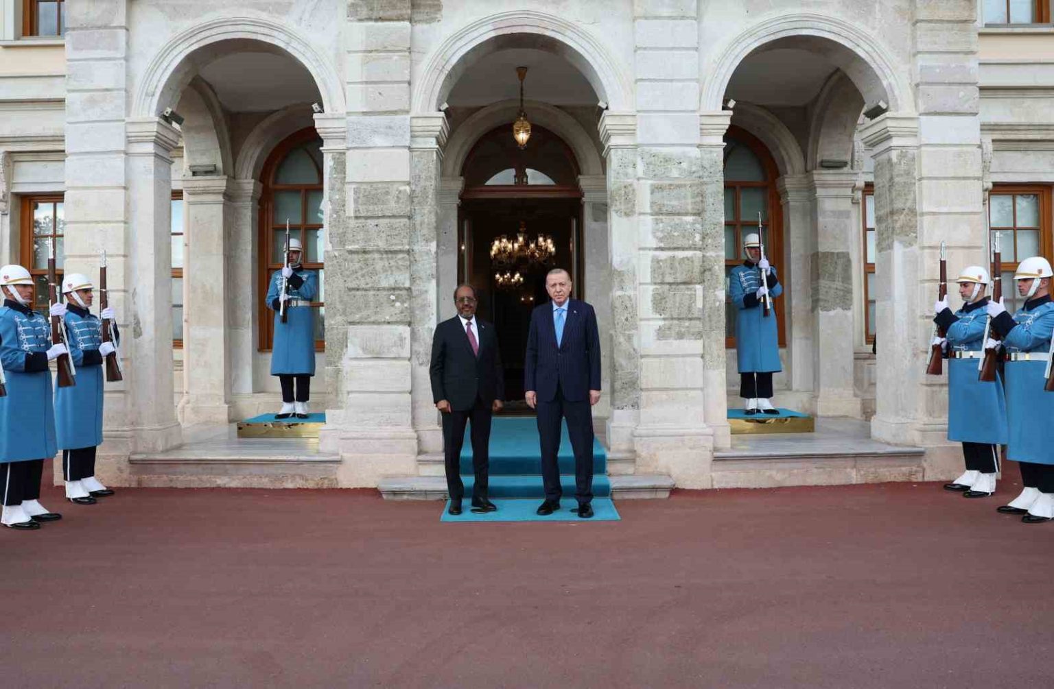 Cumhurbaşkanı Erdoğan, Somalili mevkidaşı Hasan Şeyh Mahmud’u resmi törenle karşıladı. İki liderin, görüşmenin ardından ortak bir basın toplantısı düzenlemesi bekleniyor.