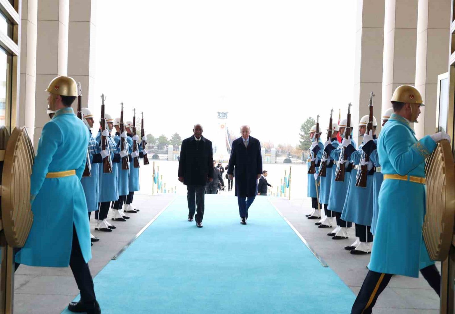 Cumhurbaşkanı Recep Tayyip Erdoğan, Sudan Egemenlik Konseyi Başkanı Abdelfettah el Burhan’ı resmi törenle karşıladı.