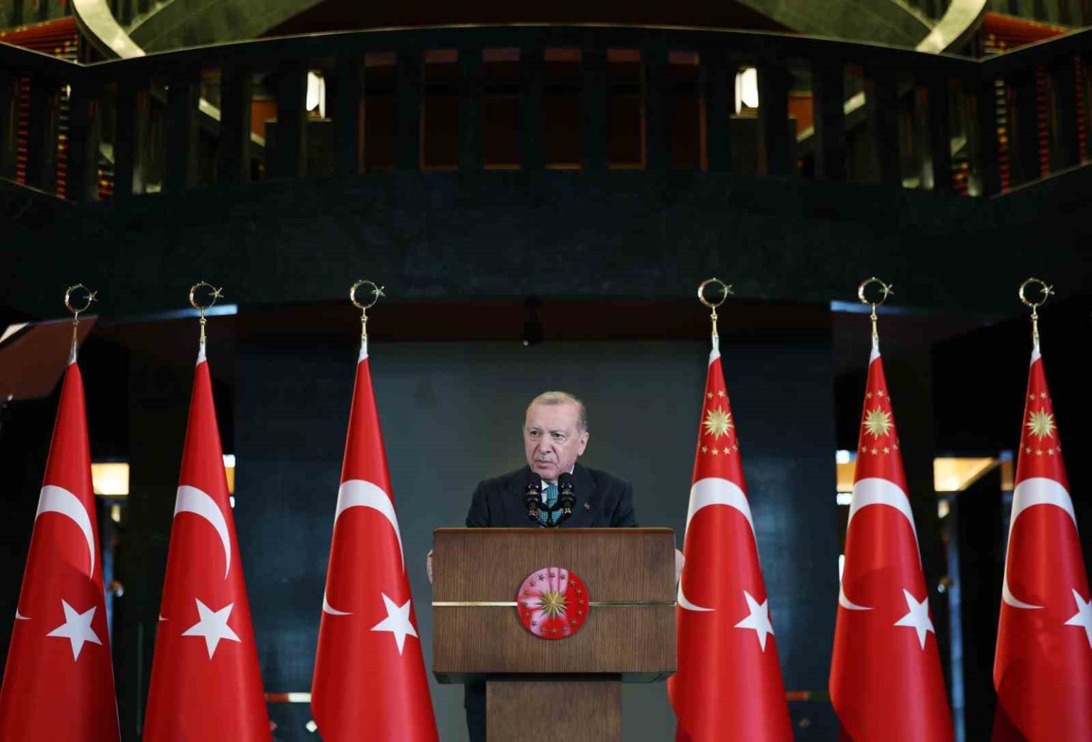 Cumhurbaşkanı Recep Tayyip Erdoğan, Cumhurbaşkanlığı Külliyesi’nde düzenlenen Valiler Buluşması’nda konuştu. Cumhurbaşkanı Erdoğan, İçişleri Bakanlığı görevini devreden Ali Yerlikaya’ya hizmetlerinden dolayı teşekkür ederek, yeni İçişleri Bakanı Mustafa Çiftçi’ye başarılar diledi. Ramazan ayının da tüm İslam alemine hayırlar getirmesini temenni eden Erdoğan, “Ramazan-ı Şerif’i derme çatma çadırlarda karşılayan, buna rağmen vakar ve dirayetinden taviz vermeyen Gazzeli kardeşlerime şahsım ve ülkem adına dayanışma mesajlarımızı gönderiyorum. Milletimizin her bir ferdinden dualarında Filistinli mazlumları unutmamasını ayrıca ve özellikle istirham ediyorum. Bizler birbirimize destek oldukça, birbirimizin yaralarını sardıkça, yekvücut olup dayanışmamızı, muhabbetimizi artırdıkça bölgemizde ve gönül coğrafyamızda barışın, huzurun ve istikrarın hüküm süreceği o güzel günlerin inşallah çok yakın olduğunu burada bir kez daha ifade etmek istiyorum. Yeter ki zulmün ve zalimin karşısında dimdik duralım. Yeter ki kardeşliğimize ve kardeşlerimize sımsıkı sarılalım. İnancımıza ve hayallerimize sahip çıkalım. İşte o zaman Cenab-ı Allah’ın izniyle bozamayacağımız hiçbir tuzak, yırtıp atamayacağımız hiçbir plan, hüsrana uğratamayacağımız hiçbir oyun ve senaryo kalmayacaktır” diye konuştu.