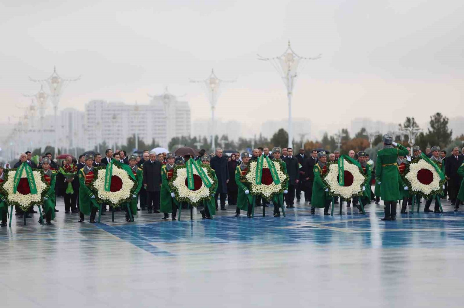 Cumhurbaşkanı Recep Tayyip Erdoğan, Türkmenistan’ın başkenti Aşkabat’ta devlet ve hükümet başkanlarıyla birlikte Tarafsızlık Anıtı’na çelenk koyma törenine katıldı.