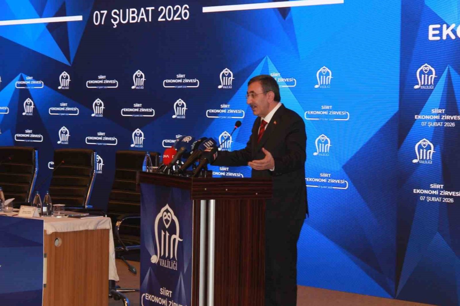 Cumhurbaşkanı Yardımcısı Cevdet Yılmaz, Siirt Valiliğince Siirt Üniversitesi Mühendislik Fakültesi Konferans Salonu’nda düzenlenen Siirt Ekonomi Zirvesi’ne katıldı. Yılmaz, burada yaptığı konuşmada, Siirt’in kardeşlik şehri olduğunu, tarihi ve kültürüyle bir arada yaşamanın güzelliklerini yansıtan örneklerini en güzel şekilde hayata geçirmiş bir il olduğunu söyledi. Çok önemli bir çalışma yapıldığını belirterek Vali Kemal Kızılkaya ve ekibini tebrik eden Yılmaz, “Ekonomik politikalarımızı yerelde olsun, merkezde olsun şekillendirirken ilk sorduğumuz soru şu; tartıştığımız konunun ilgili tarafları kim. İlgili taraflarla bir araya gelip bu meseleleri konuşmalıyız diyoruz. Onlarla bir araya gelip politikalarımızı şekillendirip belirliyoruz. Cumhurbaşkanımız liderliğinde son 23 yılda farklı bir zihniyetle hareket ettik” dedi.