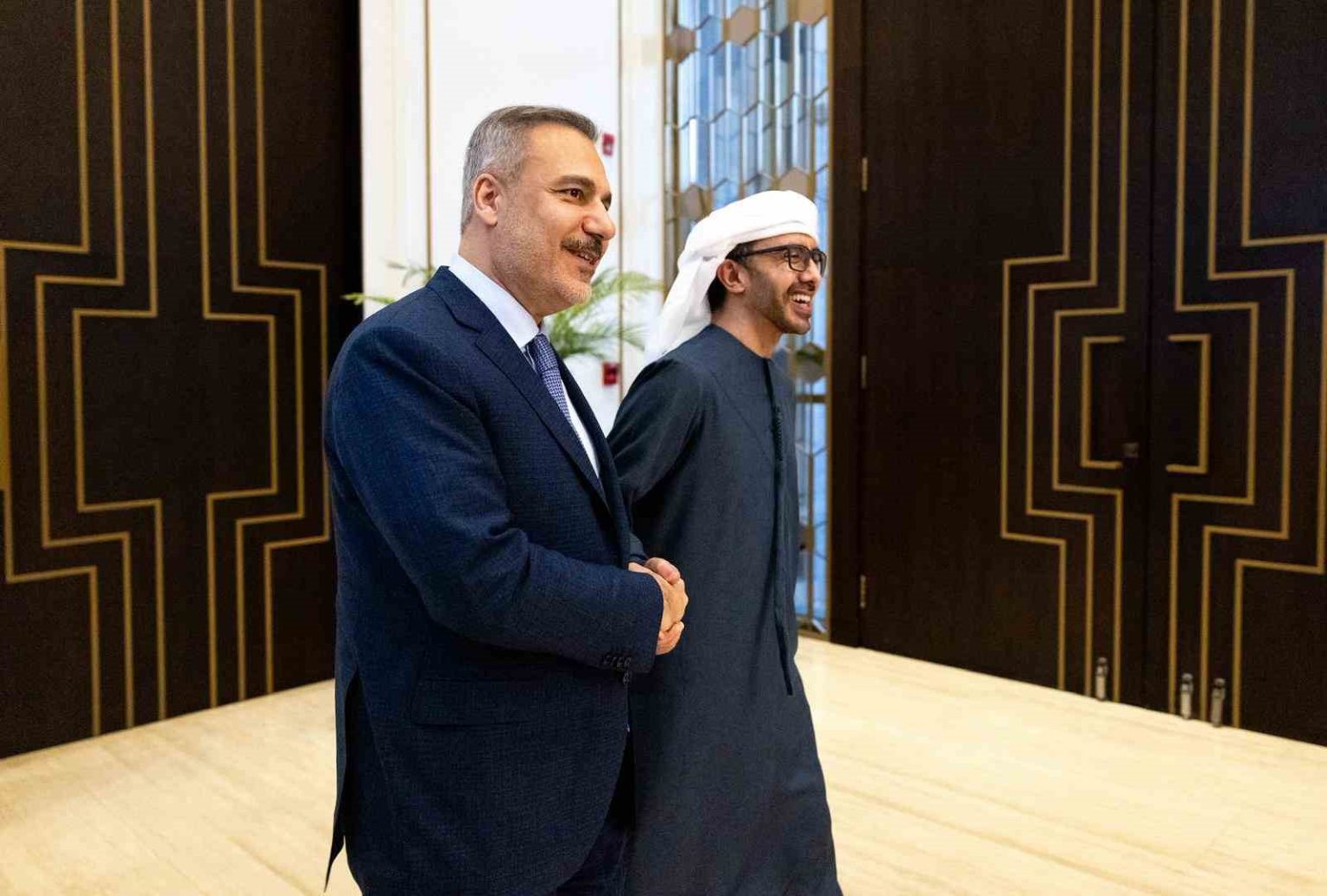 Dışişleri Bakanı Hakan Fidan, resmi ziyaret kapsamında geldiği Birleşik Arap Emirlikleri’nde (BAE) temaslarına devam ediyor. Bakan Fidan, BAE Dışişleri ve Uluslararası İşbirliği Bakanı Şeyh Abdullah bin Zayid Al Nahyan ile görüştü.