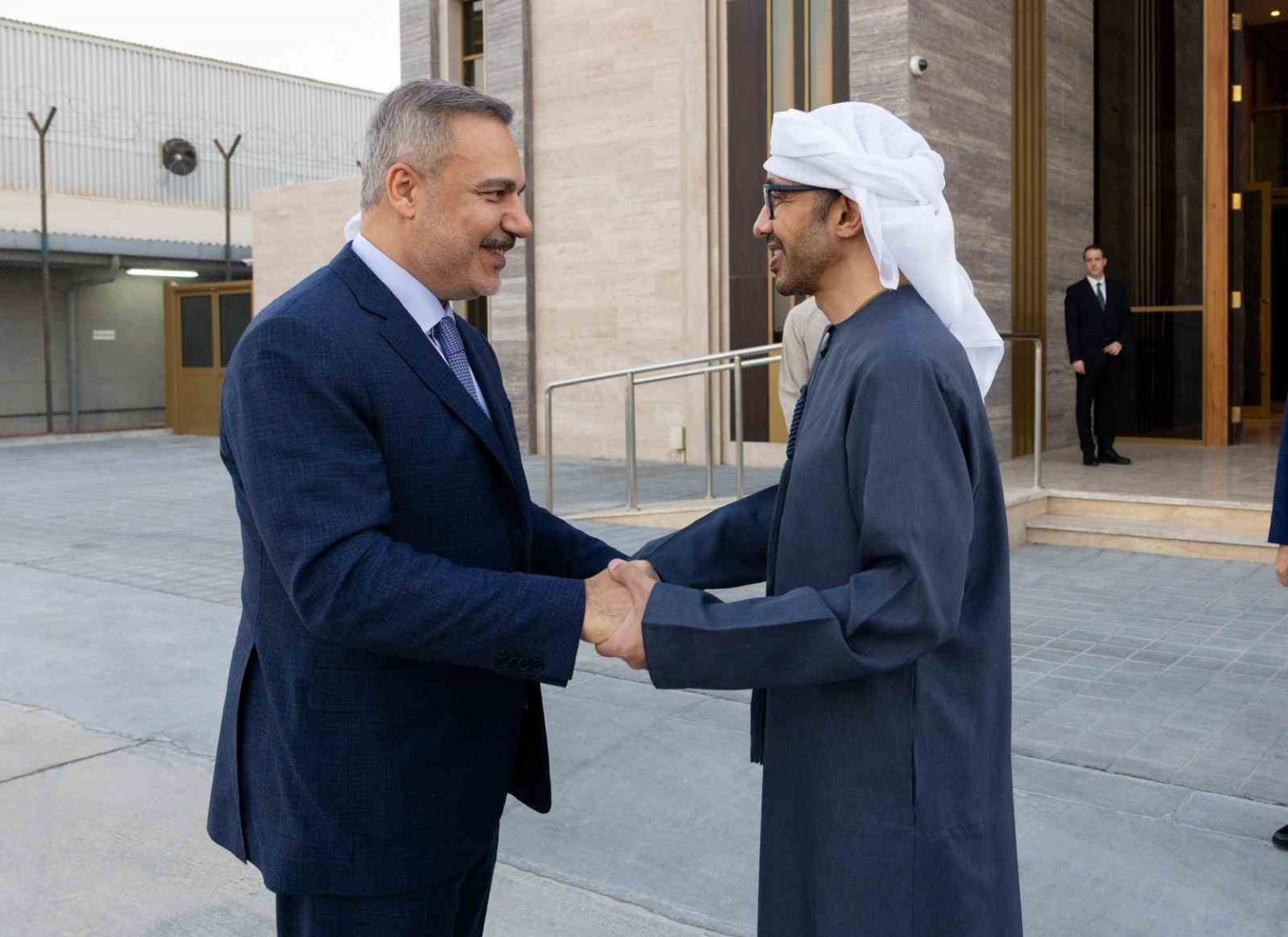 Dışişleri Bakanı Hakan Fidan, resmi ziyaret kapsamında geldiği Birleşik Arap Emirlikleri’nde (BAE) Dışişleri ve Uluslararası İşbirliği Bakanı Şeyh Abdullah bin Zayid Al Nahyan ile görüştü.