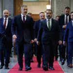 Suriye-İsrail arasındaki görüşmelere değinen Bakan Fidan, “Bunun için elimizden gelen bütün yardımı, iş birliğini göstermeye her zaman hazırız. Cumhurbaşkanımız bu konuda özellikle çok hassas. Tartıştığımız konular arasında, özellikle bölgede şu anda Suriye ile İsrail arasında yürütülen müzakerelerin biz Türkiye olarak bir sonuca ulaşmasını bekliyoruz. Bu bölgenin istikrarı için, Suriye’nin istikrarı için fevkalade önemli. İsrail’in bölgede yayılmacı politikalar izleme yerine, bölge ülkeleriyle karşılıklı rızaya dayanan bir anlaşma ve anlayış birliğinin içinde olması, bölgenin de istikrarına, küresel güvenliğe katkı yapacak bir husus” diye konuştu.