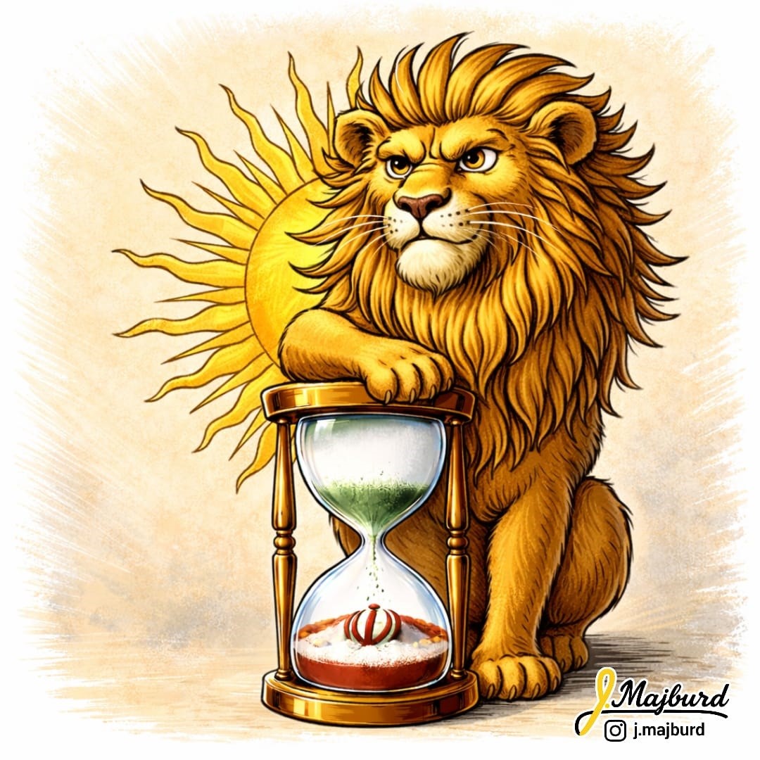 Dördüncü paylaşımda ise 1979 İran Devrimi’ne kadar İran bayrağında yer alan aslan ve güneş figürünün bir karikatüre yer verildi. Aslanın pençesi bir kum saatinin üzerinde dururken, kum saatinin alt kısmında ise İran’ın şu anki bayrağı yer aldı. Gönderide, “İran aslanlarının ve dişi aslanlarının karanlığa karşı mücadele için yükselişi. Işık, karanlığa galip geliyor” ifadelerine yer verildi.