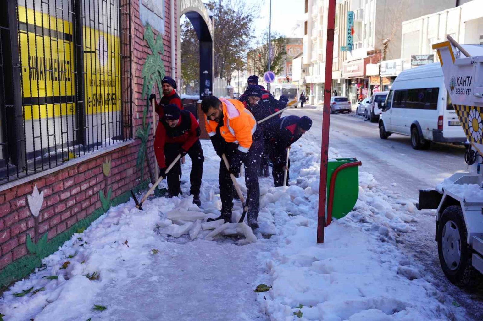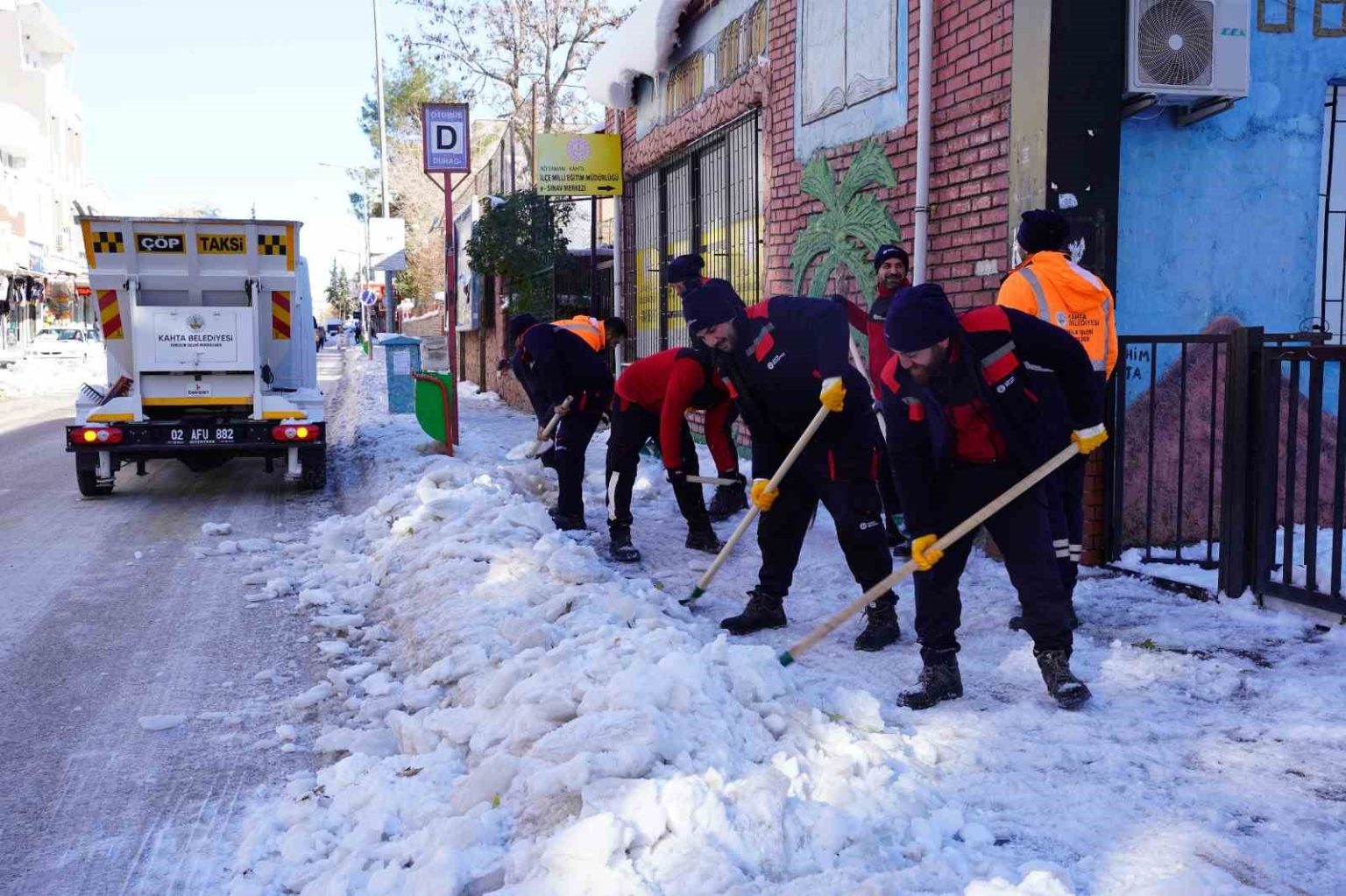 Adıyaman’ın Kahta Belediyesi, ilçe genelinde etkisini artıran kar yağışı ve buzlanmaya karşı sahadaki çalışmalarını aralıksız sürdürüyor.