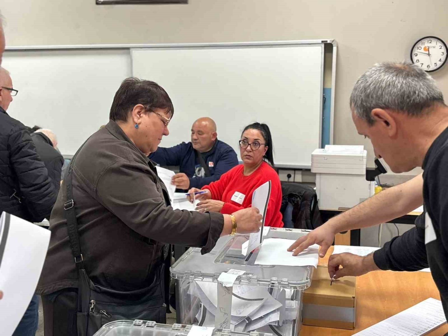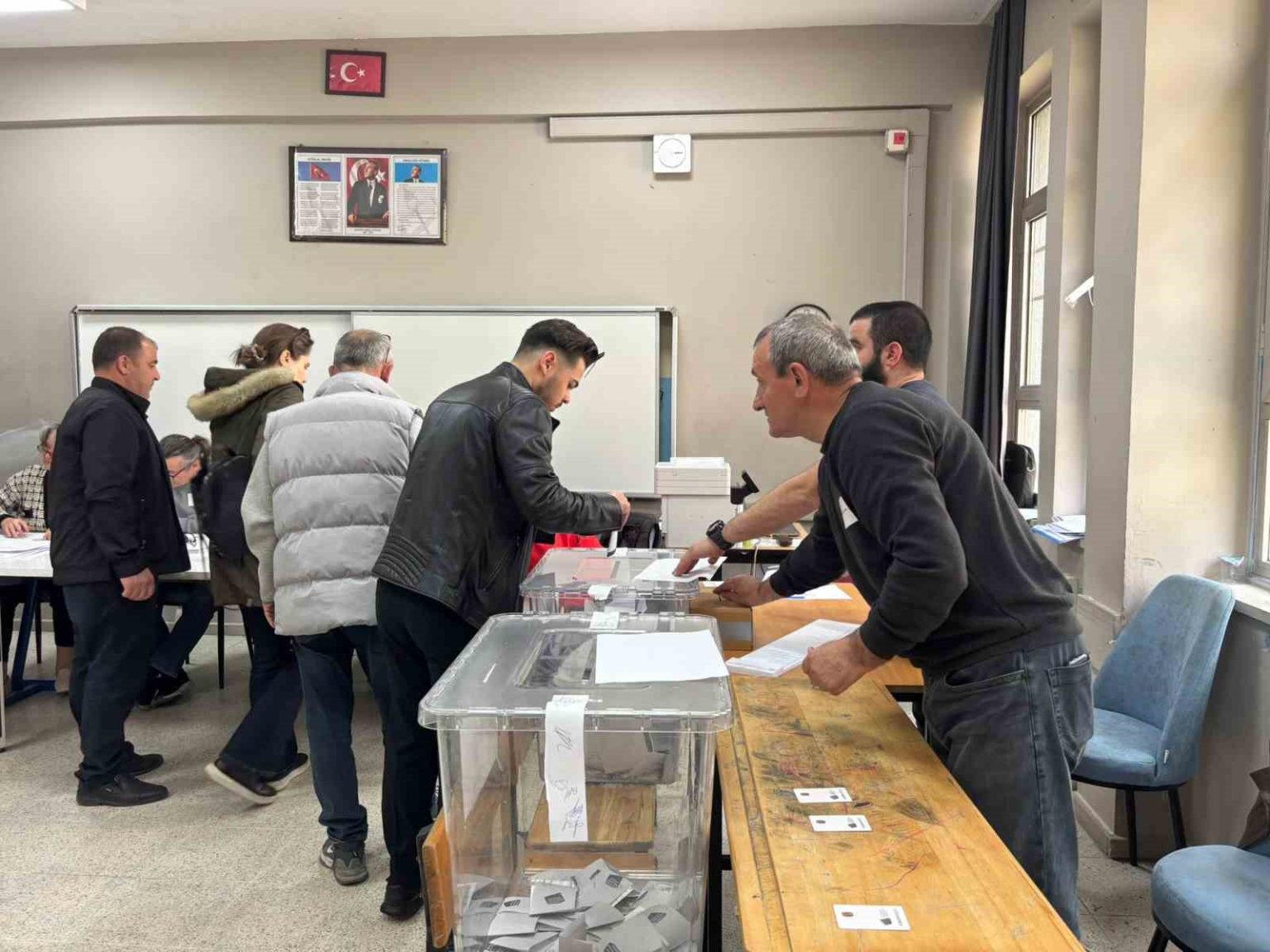 Görevliler tarafından kimlik belgeleri kontrol edilen çifte vatandaşlar, oy kullanma işlemini gerçekleştirdi.Seçmenler, demokratik haklarını kullanmak üzere sıraya girerken, okul çevresinde zaman zaman yoğunluk yaşandı.
