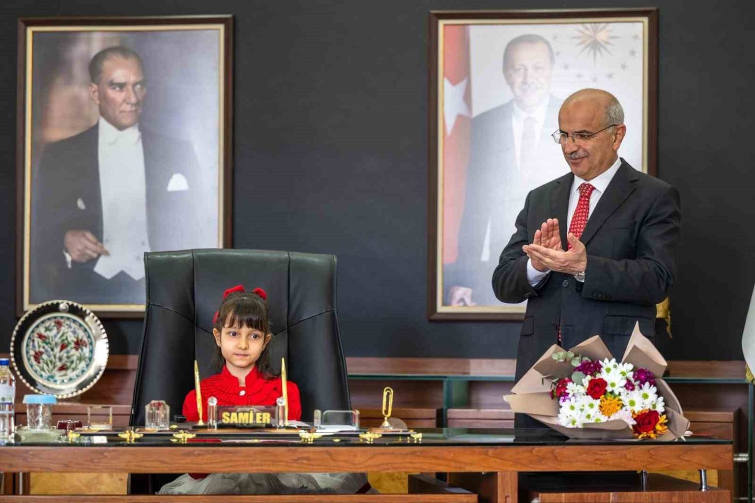 Malatya Büyükşehir Belediye Başkanı Sami Er, 23 Nisan Ulusal Egemenlik ve Çocuk Bayramı dolayısıyla koltuğunu ilkokul 3. Sınıf öğrencisi Ece Sayar’a devretti.