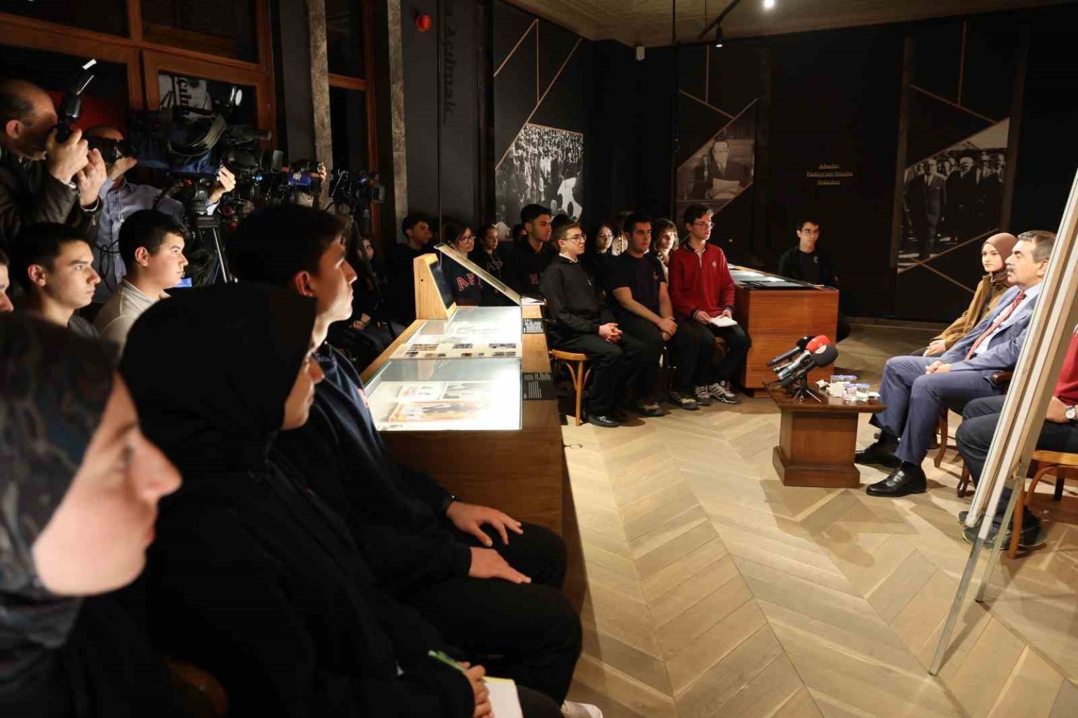 Bir dizi program ve etkinlik için Aydın’a gelen Milli Eğitim Bakanı Yusuf Tekin, Adnan Menderes Demokrasi Müzesi’nde düzenlenen özel programda Aydın’daki bir grup öğrenciye ‘Demokrasi ve İnsan’ konulu ders verdi. Yıllar sonra öğrencilerin karşısına geçip ders veren Bakan Tekin, yaklaşık 1 saatlik gecikme ile başladığı programına öğrencilerden helallik isteyerek başladı.