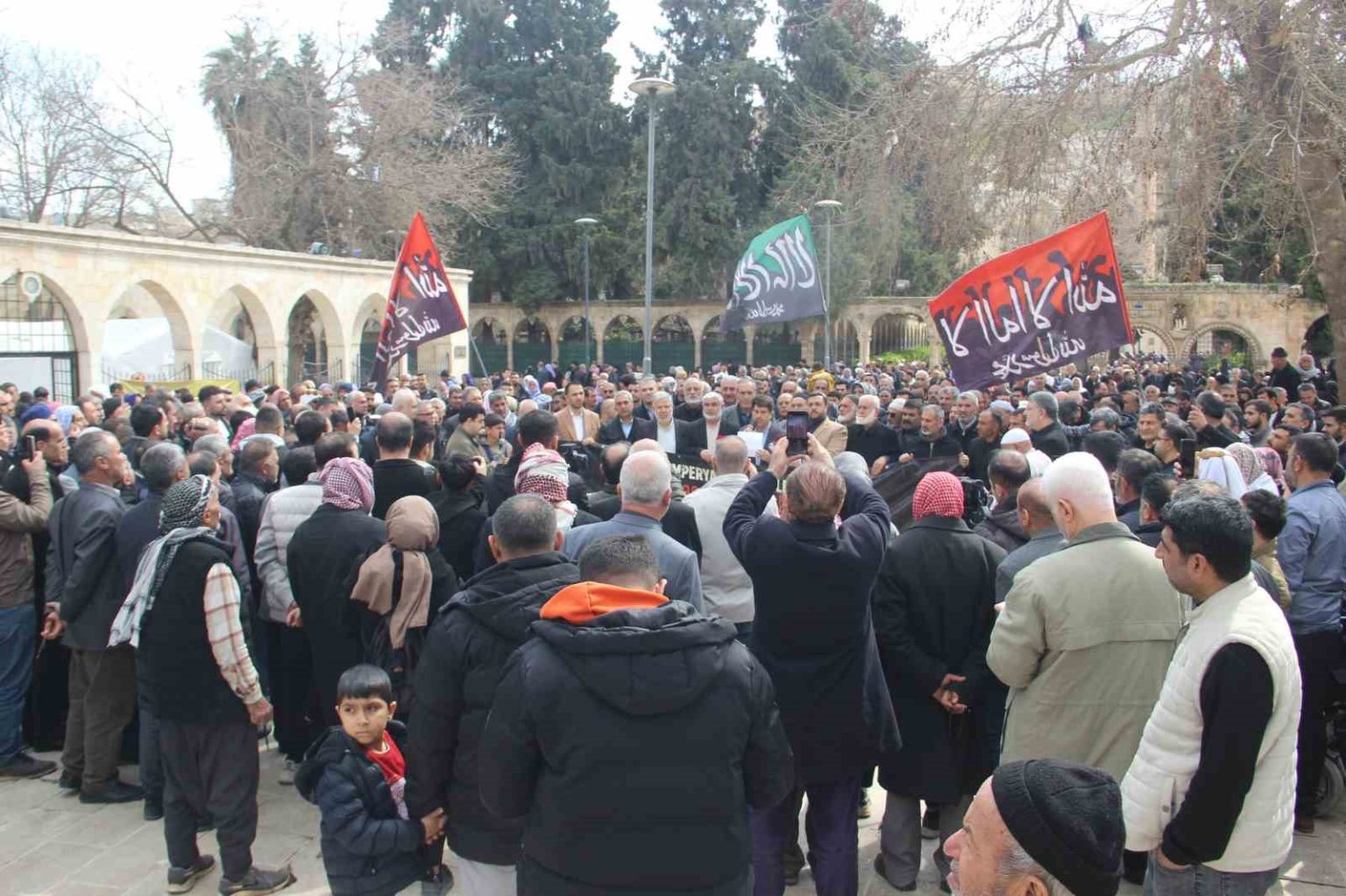 Balıklıgöl Platosu içerisindeki Mevlid-i Halil (Dergah) Camisi önünde toplanan yüzlerce kişi, ABD ve İsrail’in İran’a yönelik saldırılarını kınadı.