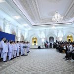 Tayland’da geçtiğimiz ay gerçekleştirilen genel seçimler sonrası parlamentoda yapılan başbakanlık oylamasının ardından oluşturulan 35 üyelik koalisyon hükümeti kabinesi, bugün başkent Bangkok’taki Dusit Sarayı’nda düzenlenen geleneksel törende Kral Maha Vajiralongkorn ve Kraliçe Suthida’nın huzurunda sadakat yemini etti. Kraliyet ailesi huzurunda gerçekleştirilen yemin töreninde Başbakan Anutin Charnvirakul ile yedi başbakan yardımcısının yanı sıra, bakanlar ve bakan yardımcıları yer aldı.