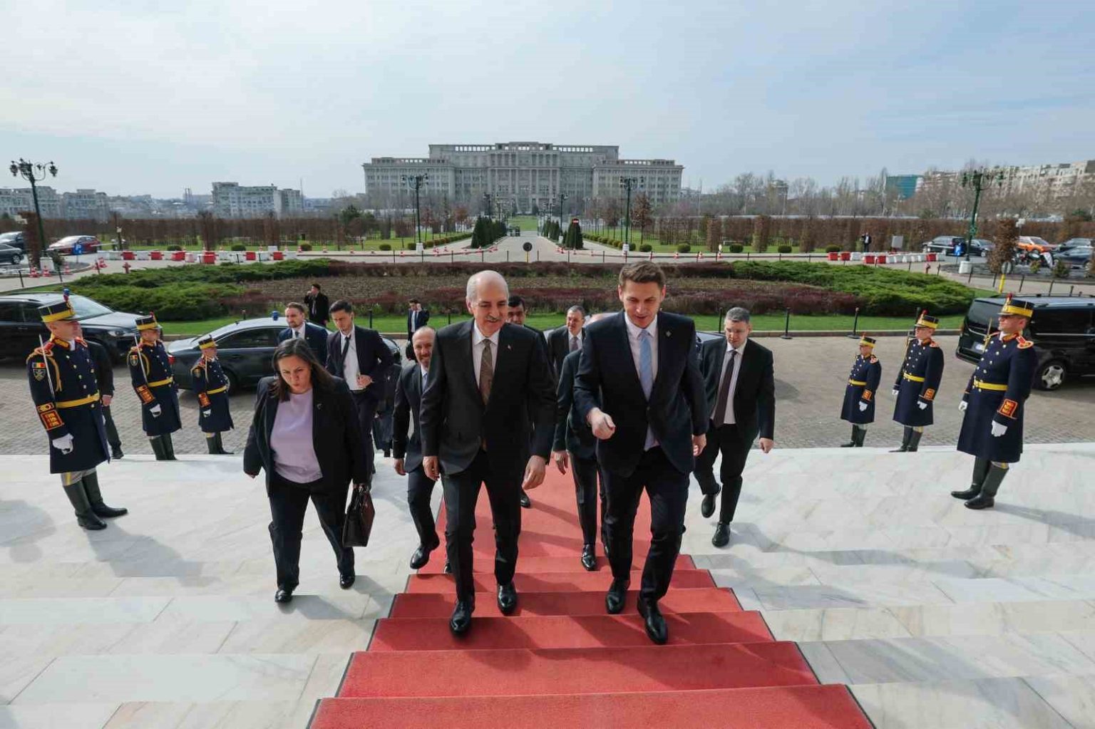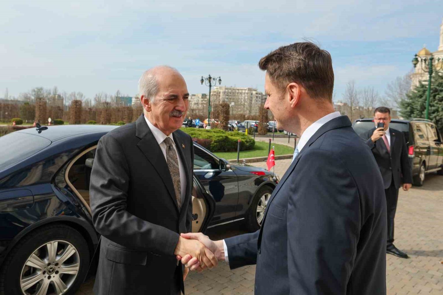 TBMM Başkanı Kurtulmuş, resmi ziyaret kapsamında dün akşam saatlerinde geldiği Romanya’da temaslarını sürdürüyor. Kurtulmuş, bugünkü temasları kapsamında Romanya Parlamentosu binasına gelişinde Senato Başkanı Abrudean tarafından resmi törenle karşılandı. Kurtulmuş ve Abrudean, daha sonra görüşmeye geçti. Kurtulmuş görüşmede, mevkidaşının davetine icabeten Romanya’da bulunmaktan duyduğu memnuniyeti dile getirerek, Meclis Başkanı düzeyinde en son 13 yıl önce gerçekleştirilen ziyaretin ardından bu ülkedeki temaslarının parlamentolar arasındaki ilişkiler başta olmak üzere mükemmel seviyede seyreden iki ülke arasındaki yakın dostluk ve iş birliğine önemli katkılar sunması temennisini ifade etti. Bu akşam İstanbul’da oynanacak 2026 FIFA Dünya Kupası Avrupa Elemeleri play-off turu yarı finalinde Romanya ve Türkiye’nin milli takımlarına başarılar dileyen Kurtulmuş, sonuç ne olursa olsun, bu karşılaşmanın iki ülkenin dostluğuna ve kardeşliğine katkı sunacağını belirtti.