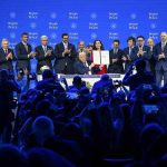 Törende Türkiye’yi Dışişleri Bakanı Hakan Fidan temsil ederken, sözleşmeye imza atan liderler arasında Arjantin Cumhurbaşkanı Javier Milei, Ermenistan Başbakanı Nikol Paşinyan, Azerbaycan Cumhurbaşkanı İlham Aliyev, Bulgaristan Başbakanı Rosen Jelyazkov, Macaristan Başbakanı Viktor Orban, Endonezya Cumhurbaşkanı Prabowo Subianto, Kazakistan Cumhurbaşkanı Kasım Cömert Tokayev, Kosova Cumhurbaşkanı Vjosa Osmani, Pakistan Başbakanı Şahbaz Şerif, Paraguay Devlet Başkanı Santiago Pena, Katar Başbakanı ve Dışişleri Bakanı Şeyh Muhammed bin Abdurrahman Al-Thani, Özbekistan Cumhurbaşkanı Şevket Mirziyoyev ve Moğolistan Başbakanı Gombojav Zandanshatar da yer aldı.