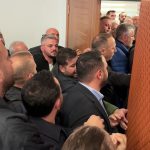 Meclisin birinci başkan vekili katip ve encümen seçimlerinin yapılabilmesi için salona geldi. Meclisin devam ettirilmek istemesine rağmen CHP’liler kapıyı içerden tutup “Direne Direne Kazanacağız” sloganları attı. AK Partililer ise CHP’lilerin kapıyı tutması sebebiyle salona giremedi.