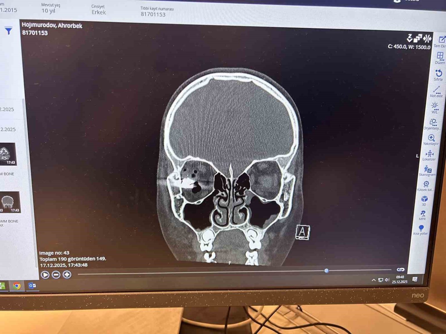 Özbekistan uyruklu 10 yaşındaki Ahrorbek Hojimurodov, Aralık 2025 tarihinde evde kuzeni ile birlikte silahla oynamaya başladı. Babası Bunyodjon Imomov’un uyarılarına rağmen çocukların oynadıkları silah bir anda patladı. Patlamanın etkisiyle silahtan çıkan mermi, Hojimurodov’un sağ gözüne çok yakın bir bölgeden beynine isabet etti. Babası tarafından ilk olarak Taşkent’teki bir hastaneye götürülen ve gözünü kaybetme riski bulunan Hojimurodov’a başarı oranı yüzde 40-60 olarak verildi. Bunun üzerine baba Imomov, oğlunu tedavi için Türkiye’ye getirerek Memorial Ataşehir Hastanesi’ndeki doktorlara teslim etti. Göz, plastik cerrahi ve beyin cerrahisi bölümlerinin koordineli çalışmalarıyla birlikte Hojimurodov’un ameliyatı başarıyla tamamlandı. Memorial Ataşehir Hastanesi Beyin ve Sinir Cerrahisi Bölümü’nden Prof. Dr. Zafer Orkun Toktaş, Hojimurodov’un tedavisinde kullanılan ve klasik yöntemlerden farklı olarak kapalı şekilde; adeta ’askeri dron sistemi’ne benzer yöntemlerle gerçekleştirilen ’Nöronavigasyon’ teknolojili operasyonun detaylarını aktardı.