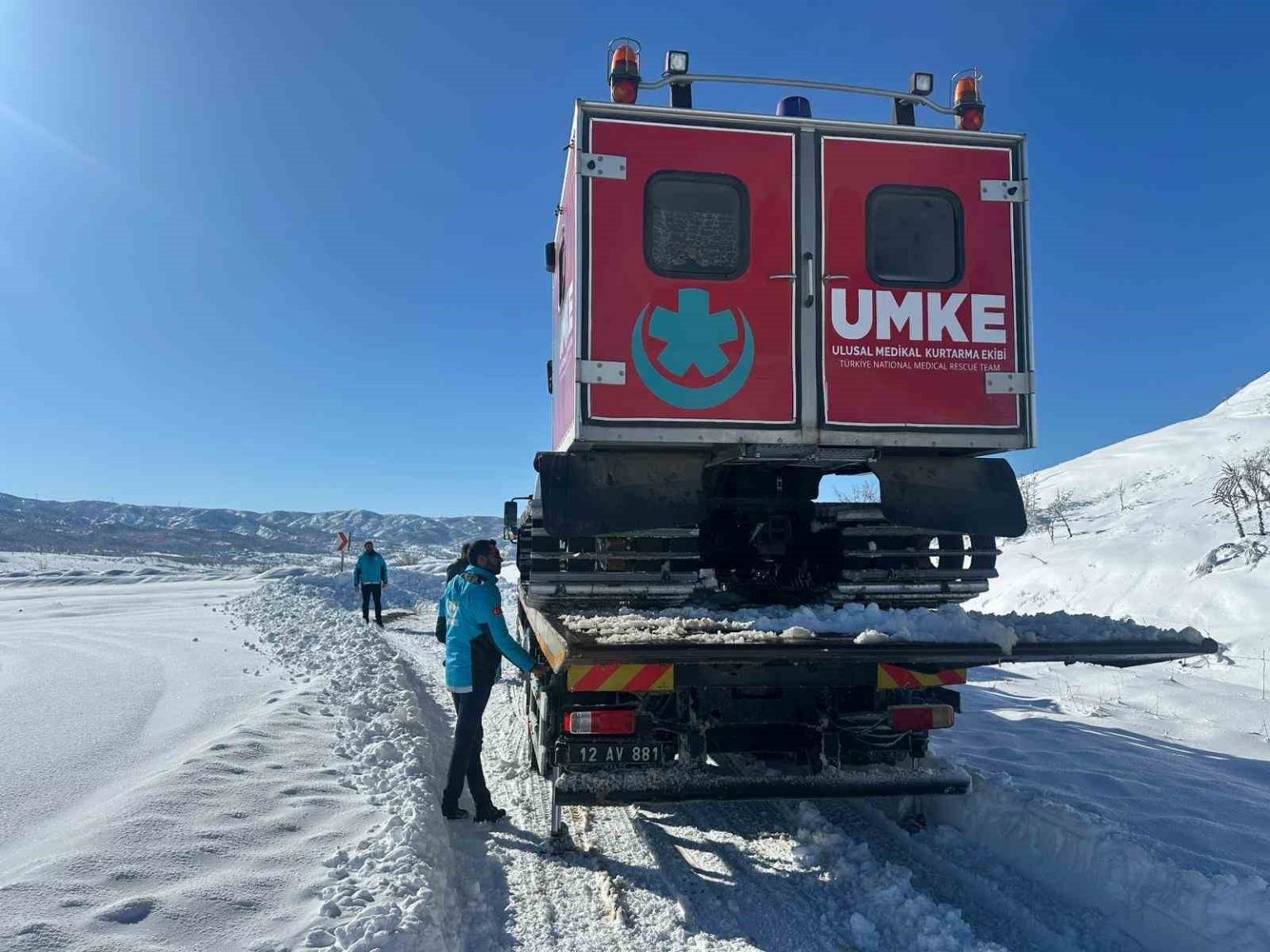 İl merkezine bağlı Aşağı Suveren Köyü’nde karın ağrısı şikayetiyle sağlık hizmetine ihtiyaç duyan 48 yaşındaki erkek hasta A.C. için yapılan ihbar üzerine Komuta Koordinasyon Merkezi harekete geçti. Yoğun kar yağışı nedeniyle kara yolu ulaşımının sağlanamadığı bölgede UMKE ekipleri, tam paletli araçla köye ulaşarak hastaya ilk tıbbi değerlendirmeyi yaptı. UMKE ekiplerince gerekli müdahaleleri yapılan hasta, daha sonra güvenli bir şekilde 112 Acil Sağlık ambulans ekiplerine teslim edilerek hastaneye sevk edildi.