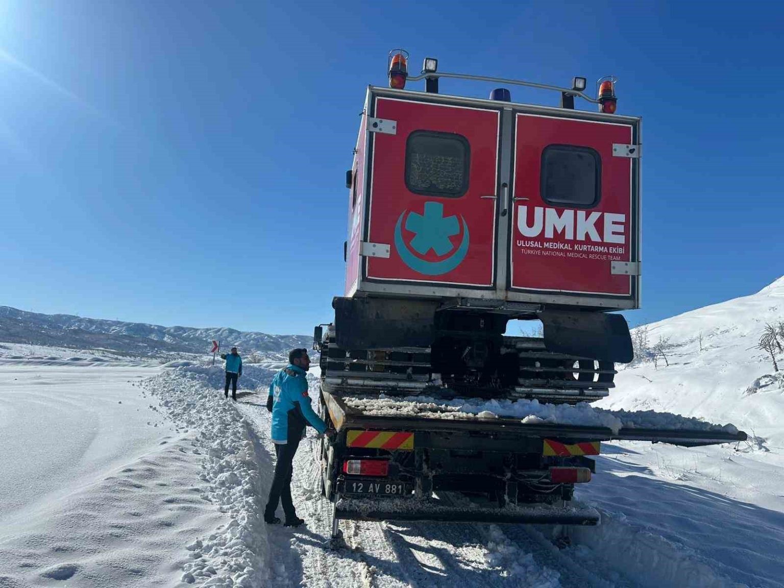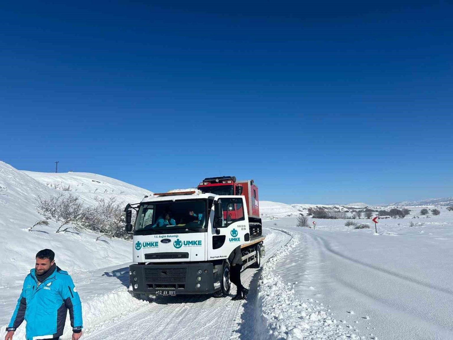Bingöl’de etkili olan yoğun kar yağışı ve olumsuz hava şartlarına rağmen UMKE ekipleri, sağlık hizmetlerinin aksamaması için fedakarca çalışmalarını sürdürüyor.