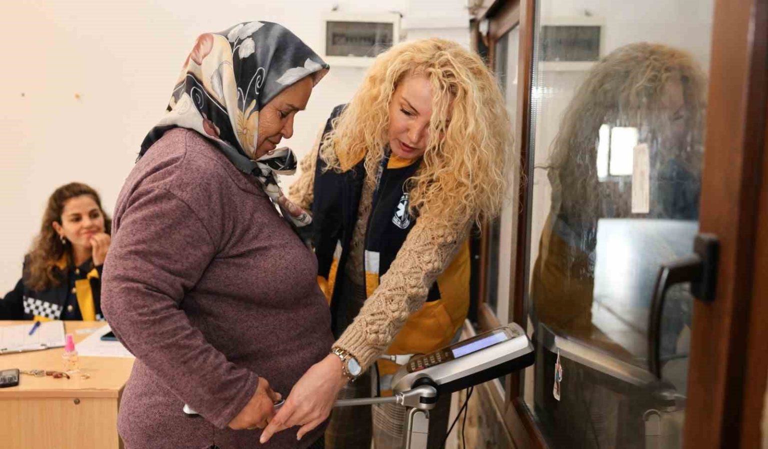 Gezen Tartı Projesi kapsamında Sağlık Hizmetleri Bürosu’nda görevli diyetisyen tarafından vatandaşların vücut yağ oranı, kas kütlesi, metabolizma hızı gibi ölçümler yapılırken kişisel sağlık hedeflerine yönelik bilgilendirme ve önerilerde de bulunuldu.