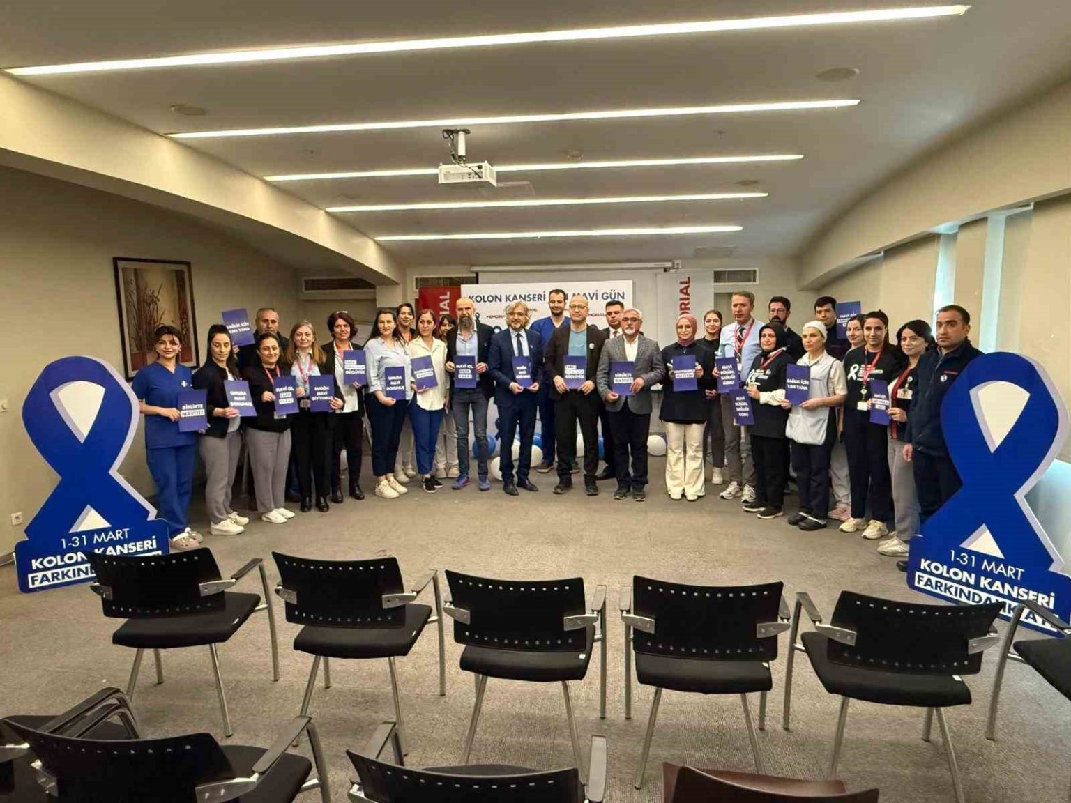 Sunumların ardından açıklamalarda bulunan Memorial Sağlık Grubu Direktörü Abdurrahman Aktaş, mart ayının kolon kanseri farkındalık ayı olduğunu söyledi. Bunun rengi olarak da maviyi, gökyüzünün ve denizin mavisini seçerek hayata ve canlılığa vurgu yaptıklarını belirten Aktaş, çünkü erken teşhise en fazla olumlu yanıt veren kanser türlerinden biri kolon kanseri olduğunu dile getirdi.