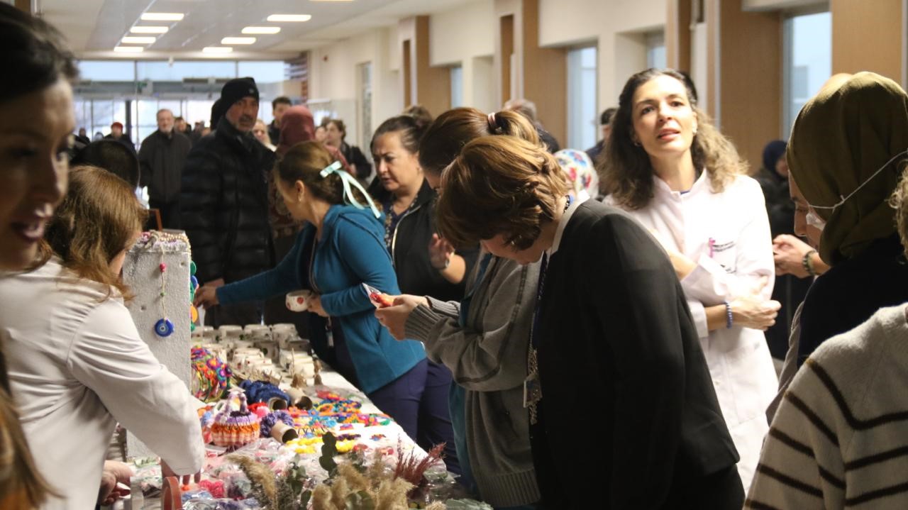 Eskişehir Osmangazi Üniversitesi Sağlık Uygulama ve Araştırma Hastanesi geliri kanserli çocukların ihtiyaçlarında kullanılmak üzere Çocuk Hematoloji ve Onkolojisi Bilim Dalı’nın El İşi ve El Sanatları Sergisi’nin açılışı yapıldı. Açılışa Eskişehir Osmangazi Üniversitesi Sağlık Uygulama ve Araştırma Hastanesi Başhekimi Prof. Dr. Haluk Hüseyin Gürsoy, Başhekim yardımcısı Prof. Dr. Pınar Yıldız , Çocuk Sağlığı ve Hastalıkları Anabilim Dalı Çocuk Hematolojisi-Onkolojisi Bilim Dalı Öğretim Üyesi Prof. Dr. Zeynep Canan Özdemir, Hastane Yönetimi ve bölüm çalışanları ile hasta yakınları hastane öğretmenleri katıldı. Eskişehir Osmangazi Üniversitesi Sanat ve Tasarım Fakültesi öğrencileri, doktorlar, sağlık çalışanları ve gönüllü vatandaşların ürün verdiği sergi 24 ve 25 Aralık tarihlerinde sürecek.