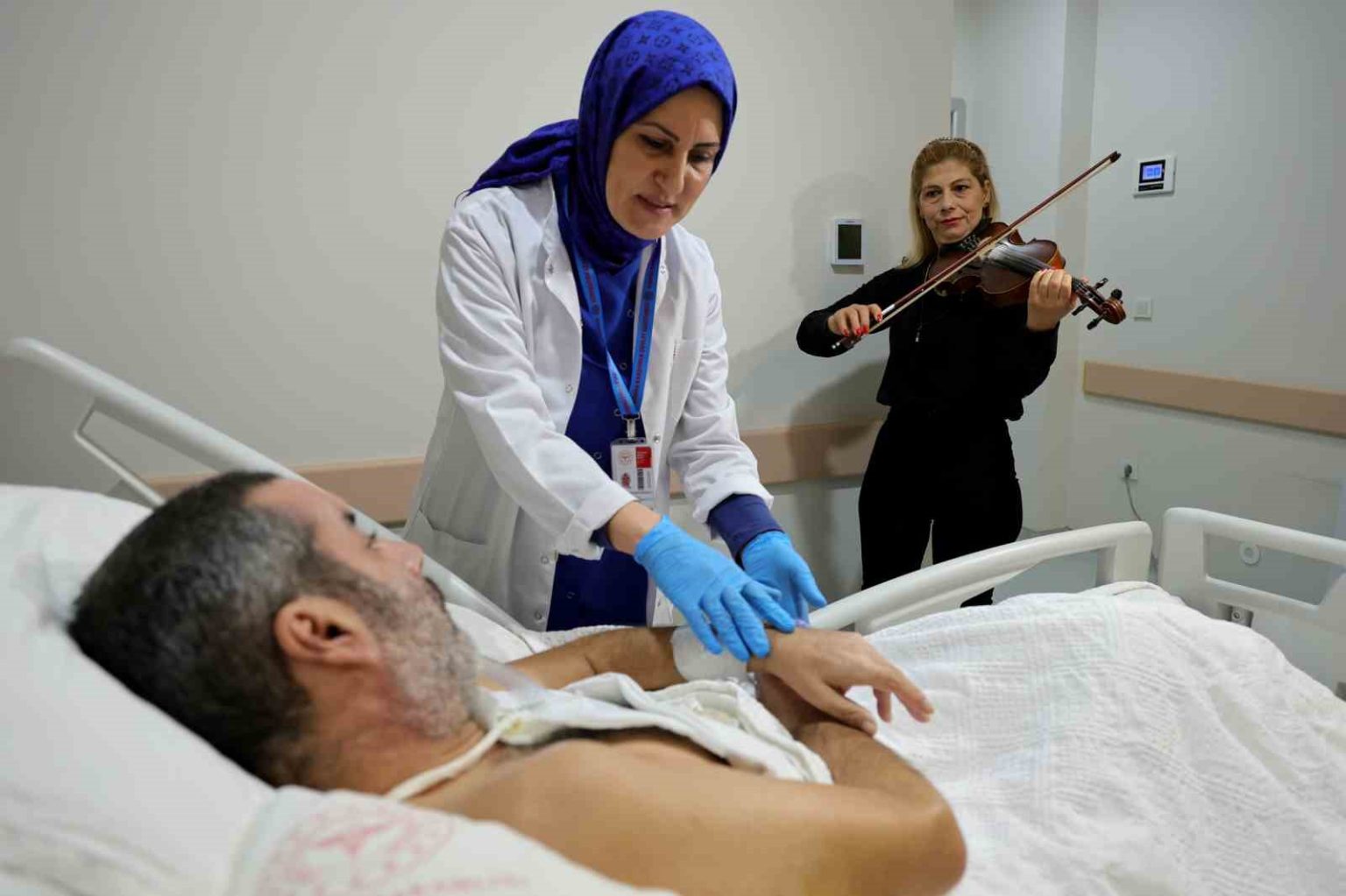 Adana Karşıyaka Devlet Hastanesi’nde bulunan ‘Palyatif Bakım Servisi’nde tedavi gören hastalara keman çalınarak müzik dinletisi sunuluyor. Serviste, hasta yakınları içinde Kur’an-ı Kerim okunup manevi destek hizmeti veriliyor.