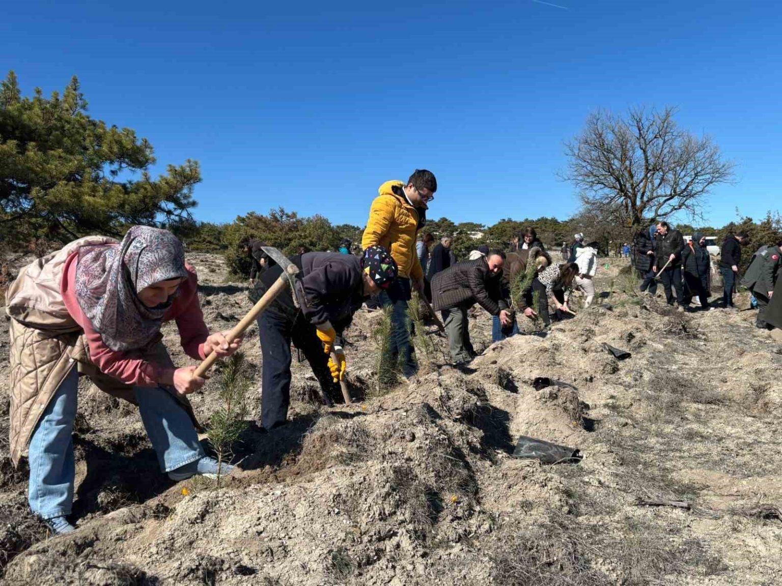 Eskişehir İl Sağlık Müdürlüğü tarafından ’14 Mart Tıbbiyeliler Ormanı’ için düzenlenen etkinlikte, sağlık çalışanları ve katılımcılar fidanları toprakla buluşturdu.