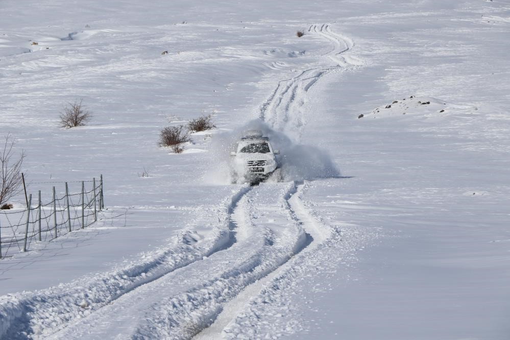 Erzincan’da paletli ambulanslar karlı dağları aşıp hastalara umut oluyor.