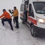 Kars genelinde etkisini sürdüren olumsuz hava şartları, ulaşımda aksamalara neden olmaya devam ediyor. Edinilen bilgiye göre, Kars’ın Akyaka ilçesine bağlı İbiş köyünde yüksek ateş şikayeti olan 2 çocuğun ailesi durumu 112 Acil Çağrı Merkezi’ne bildirdi. İhbar üzerine bölgeye sevk edilen sağlık ekipleri, yoğun kar ve tipi nedeniyle ilerlemekte güçlük çekti. Tipinin etkili olduğu bölgede hasta çocuklara ulaşmaya çalışan ambulans kara saplanarak mahsur kaldı. Durumun bildirilmesi üzerine bölgeye hızla Akyaka Özel İdares karla mücadele ekipleri sevk edildi. İş makinelerinin yoğun çalışması sonucu kara saplanan ambulans kurtarılarak yolun bir kısmı ulaşıma açıldı.