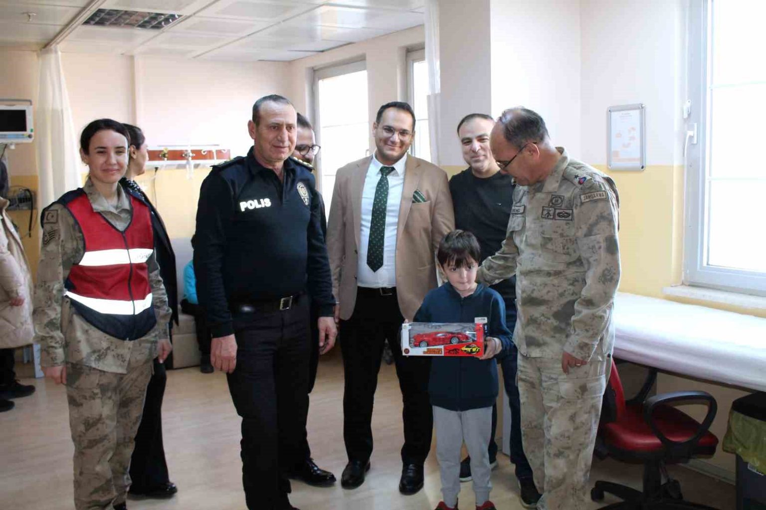 “Gülümse Midyat, Umut Çocuklarda” adıyla başlatılan proje, hastanede tedavi gören çocukların psikolojik iyilik haline katkı sunmayı hedefliyor. Yapılan etkinliğe İlçe Emniyet Müdürü Mehmet Baykara, İlçe Jandarma Komutanı Jandarma Binbaşı Mustafa Deniz, Midyat Devlet Hastanesi Başhekimi Uzm. Dr. Mehmet Burak Peköz, Midyat Ağız ve Diş Sağlığı Merkezi Başhekimi Başhekimi Dt. Yunus Deniz katıldı. Etkinlikte çocuk servisinde yatan hastalar ziyaret edilerek, hediyeler verildi.