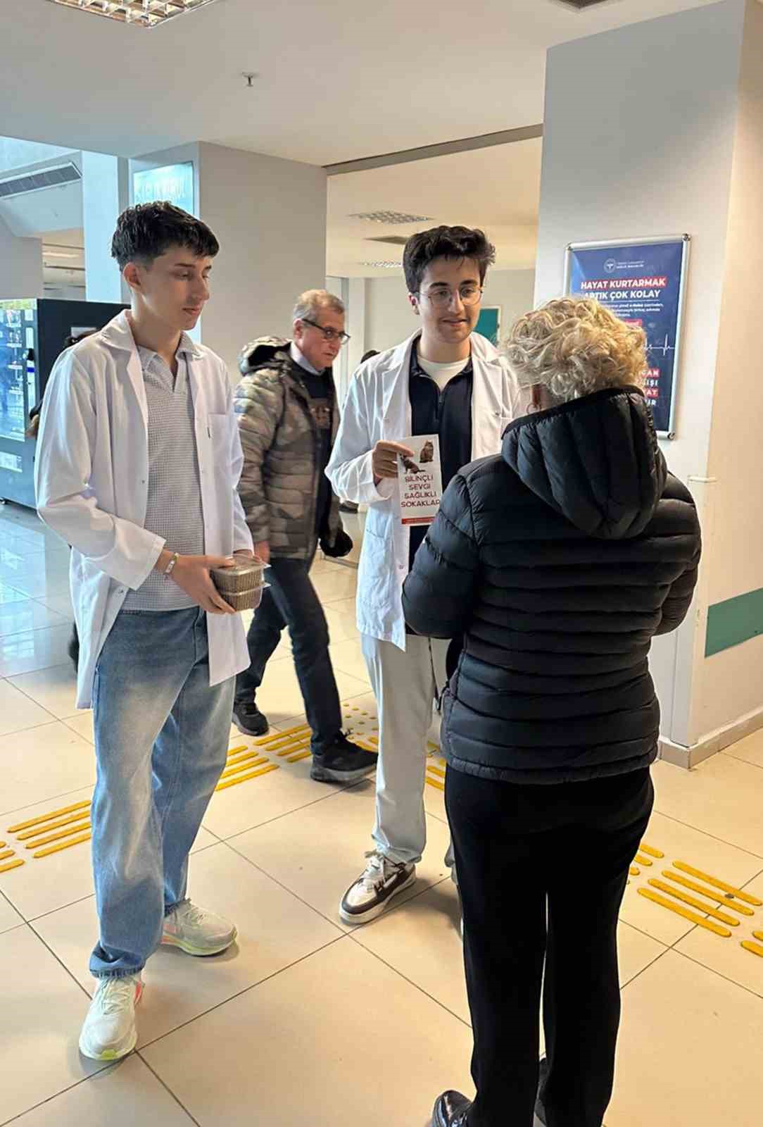 Etkinlik kapsamında hastaneye başvuran vatandaşlara sokak hayvanlarının doğru beslenmesi, bakım süreçleri ve bu hayvanlardan bulaşabilecek hastalıklarla ilgili toplumda yaygın olan yanlış inanışlar hakkında bilgilendirme yapıldı. Öğrenciler tarafından hazırlanan broşürler eşliğinde gerçekleştirilen bilgilendirme faaliyetleri, katılımcılar tarafından ilgiyle karşılandı. Ayrıca etkinlikte, vatandaşların sokak hayvanlarını destekleyebilmeleri amacıyla kuru mama dağıtımı da yapıldı.