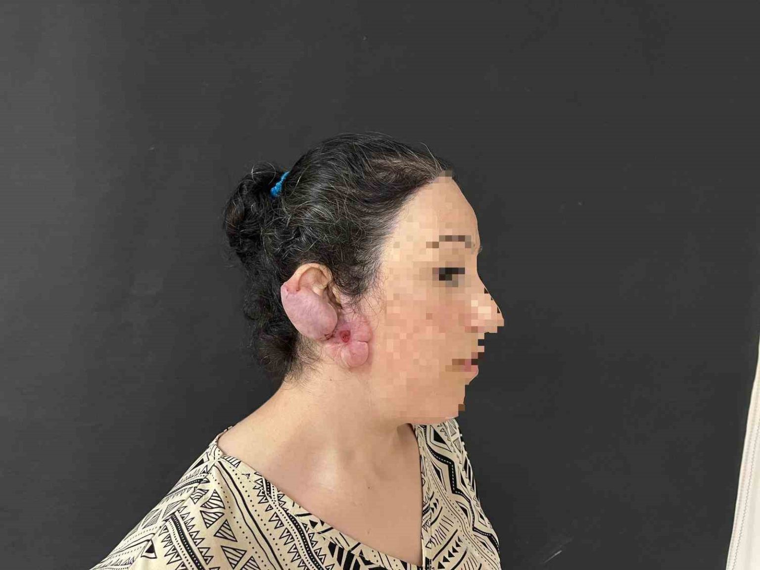 Muş’ta yaşayan 32 yaşındaki iki çocuk annesi H.A., çocukluk döneminde kulak deldirme sonrası oluşan ve zamanla büyüyerek çevre dokulara yayılan kulak keloidi nedeniyle Muş Devlet Hastanesi’nde ameliyat edildi. Kentte ilk kez uygulanan özel cerrahi teknik sayesinde hasta sağlığına kavuştu.