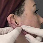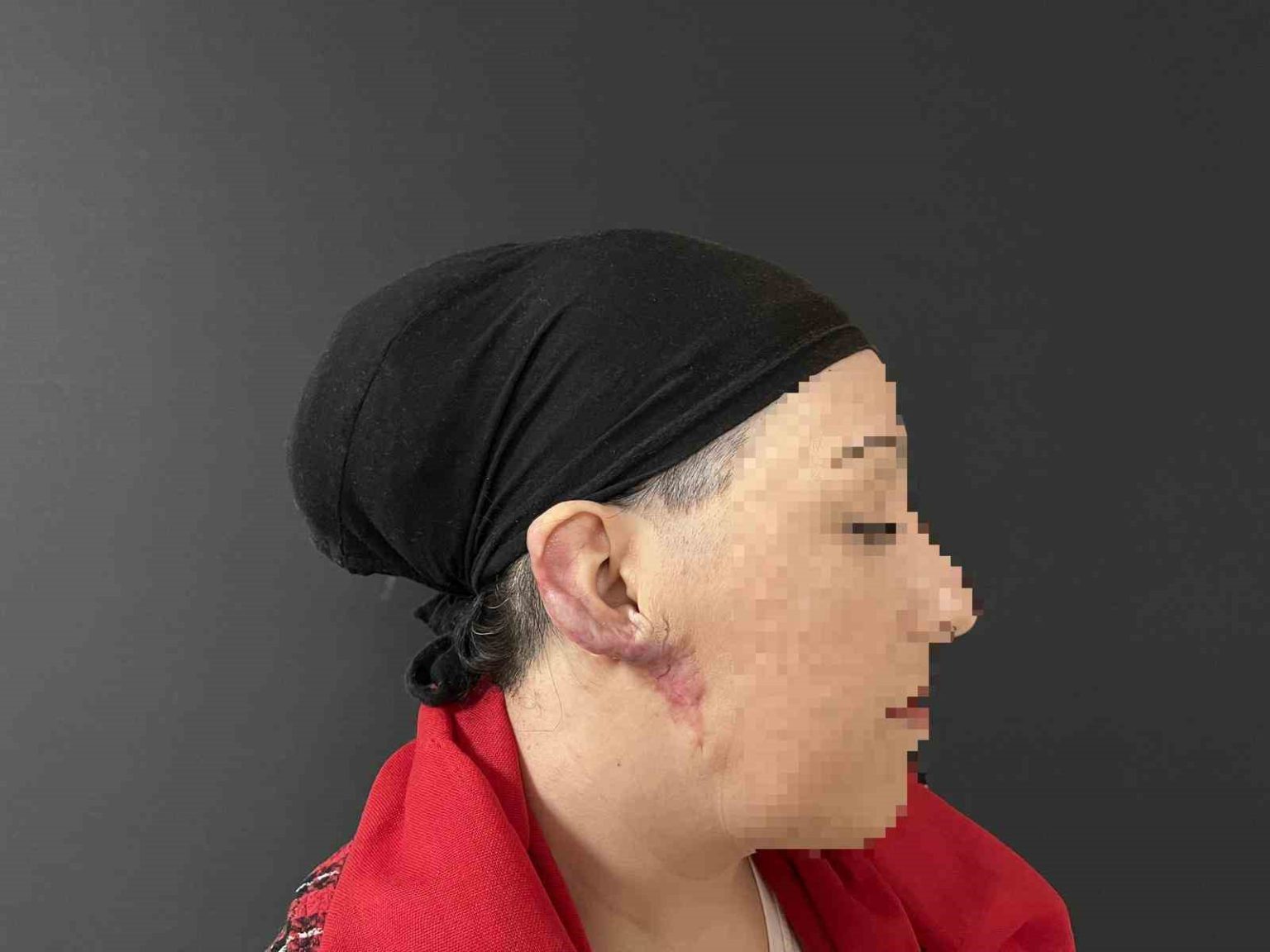 Keloid oluşumunun vücuttaki yara iyileşme mekanizmasının kontrolsüz çalışması sonucu ortaya çıktığını ifade eden Plastik Cerrahi Uzmanı Op. Dr. Halil Işık, “Vücudumuzda herhangi bir yaralanma olduğunda yara iyileşme mekanizması devreye girer ve bu süreç genellikle bir yara iziyle sonuçlanır. Keloid durumunda ise bu mekanizma kontrolden çıkar ve aşırı büyümüş bir yara izi oluşur. En sık kulak, omuz, sırt ve göğüs orta hattında görülür. Genellikle ağrı, kaşıntı, akıntı ve kulak şeklinde bozulma şikayetleriyle karşımıza çıkar. Hastamız da polikliniğimize her iki kulağında keloid lezyonlarıyla başvurdu. Özellikle sağ kulağında oldukça agresif ve büyük bir keloid mevcuttu. Kulağın yarısına kadar yayılmış, sağ yanak ve boyun bölgesine doğru ilerlemişti. Lezyonun ortasında akıntılı büyük bir yara bulunuyordu” dedi.