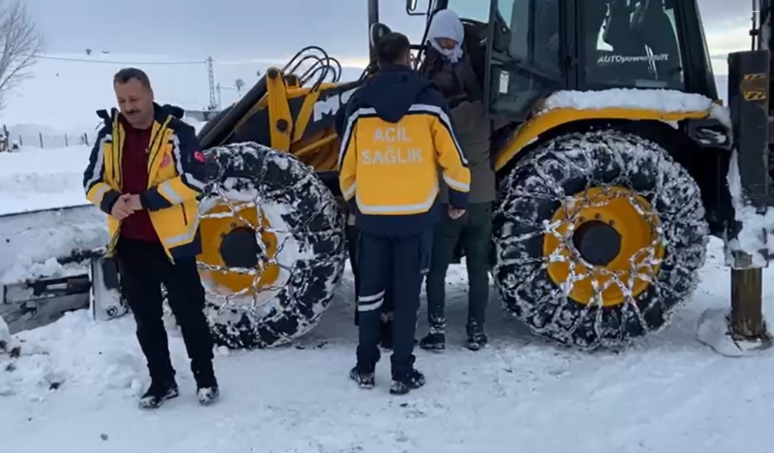 Karla mücadele ekipleri, sağlık ekiplerine öncülük ederek köy yolunu ulaşıma açtı. Yolun açılmasının ardından hasta, iş makinesine bindirilerek ambulansın bulunduğu noktaya ulaştırıldı.
