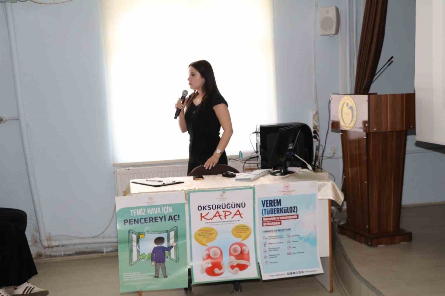 Oltu İlçe Sağlık Müdürlüğü tarafından Oltu Anadolu Kız İmam Hatip Lisesi çok amaçlı salonunda düzenlenen etkinlikte, öğrencilere verem hastalığı hakkında detaylı bilgi verildi. Eğitim, İlçe Sağlık Müdürlüğü doktorlarından Merve Öztürk tarafından gerçekleştirildi.