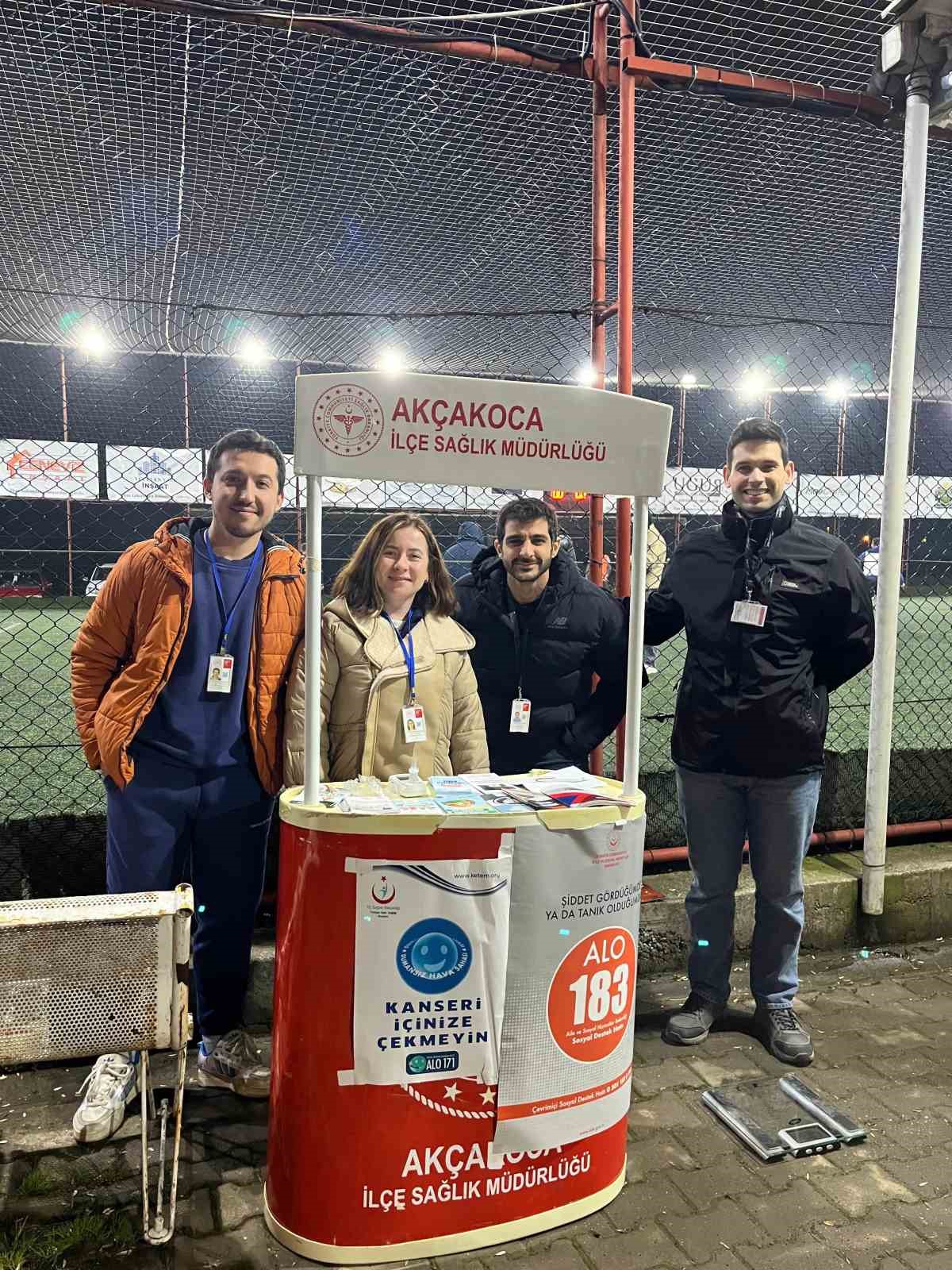 DÜZCE (İHA) – Ramazan’da Sağlık Programı kapsamında Akçakoca İlçe Sağlık Müdürlüğü ekipleri tarafından ilçede düzenlenen Ramazan turnuvası karşılaşmalarının oynandığı alanda bilgilendirme standı kuruldu.