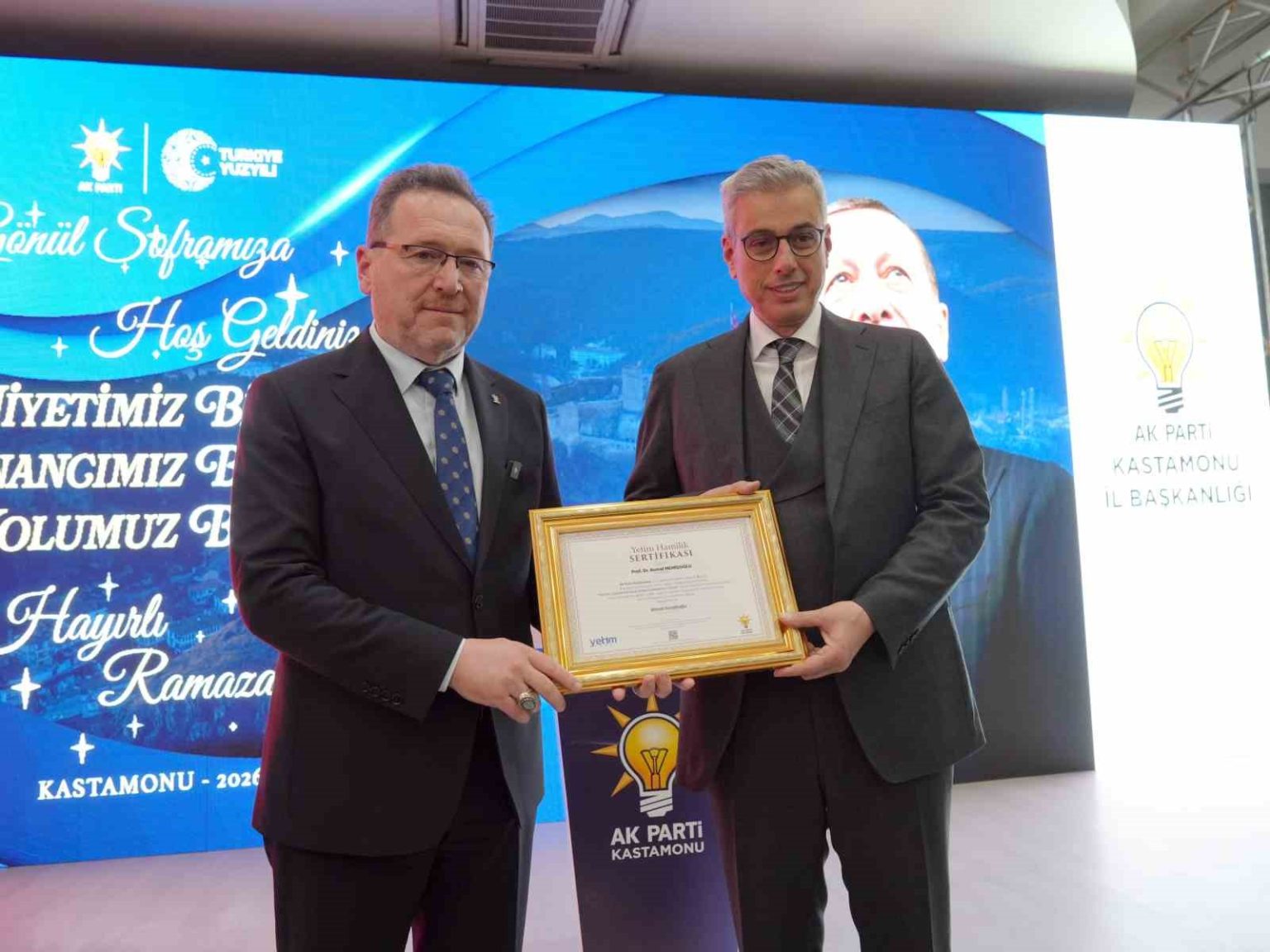 Konuşmaların ardından AK Parti Kastamonu İl Başkanı Ahmet Sevgilioğlu tarafından Bakan Memişoğlu’na, bir yetimin 6 aylık masraflarının karşılandığını gösteren bağışın yer aldığı sertifika takdim edildi. Kastamonuspor yönetimi tarafından da Bakan Memişoğlu’na forma hediye edildi.