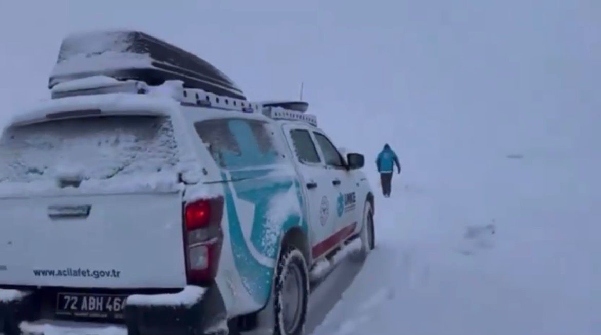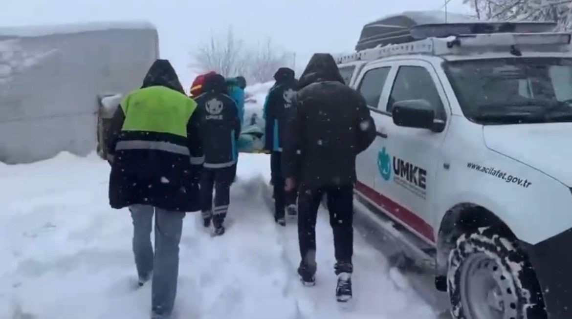 Sağlık ekipleri zorlu kar yolculuğunun ardından hastaya ulaştı