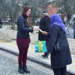 Sağlık personelleri, pazar yerini adım adım gezerek vatandaşlara bilgilendirici broşürler dağıttı.