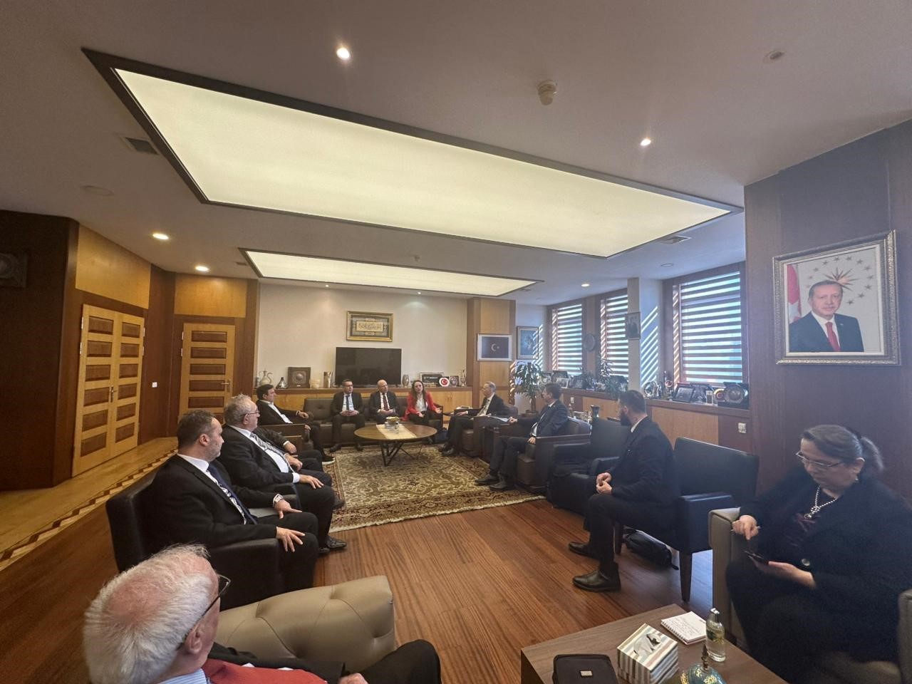 SATKOF & USTKON Genel Başkanı Prof. Dr. Aysun Bay öncülüğündeki heyet, Ticaret Bakan Yardımcısı Volkan Ağar’ı makamında ziyaret etti. Görüşmede, Ticaret Bakanı Ömer Bolat’ın bilgisi ve yönlendirmeleri çerçevesinde Türkiye’nin hizmet ihracatı vizyonuna katkı sunacak Termal Sağlık Turizmi Modeli ele alındı. Ziyarette, Cumhurbaşkanı Recep Tayyip Erdoğan’ın Türkiye Yüzyılı vizyonu doğrultusunda sağlık turizmi ve kalite altyapısına verilen stratejik destek de belirtildi.