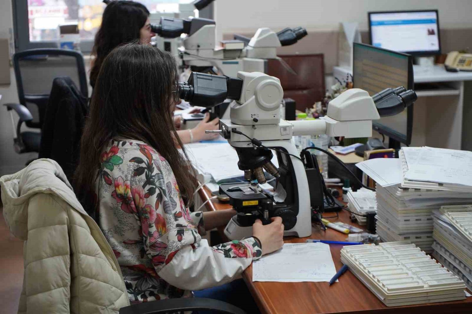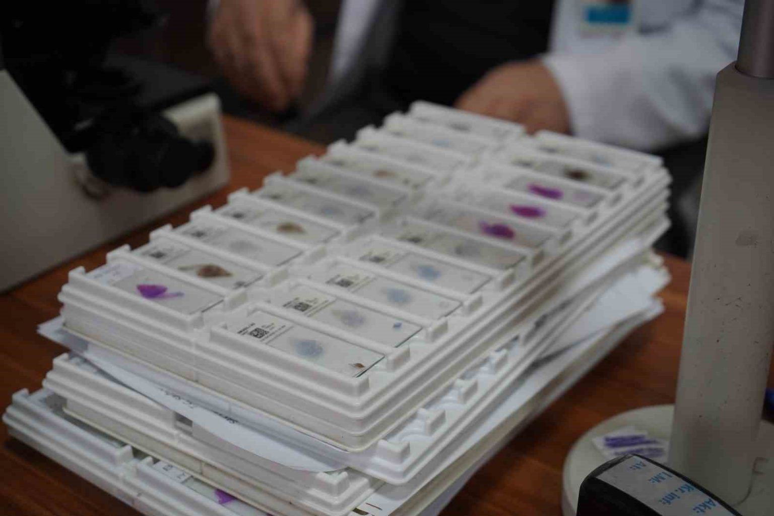 “Saçlı deriden ayak tırnağına kadar vücudun her bölgesinden bize parça gelir. Makroskopide önce değerlendirme yaparız ve hastalıklı gördüğümüz kısımlardan parçaları alırız. Patolojide özellikle mutfağımız çok önemli. Teknisyen arkadaşlar, onların materyalleri, doku takibi işlemlerinden sonra mikrotomda kesilip boyanıp bizim önümüze hazır olarak gelir, değerlendirmemiz için zemin hazırlarlar. Kesik ne kadar kaliteliyse tanıya gitmemiz o kadar sağlıklı oluyor.”
