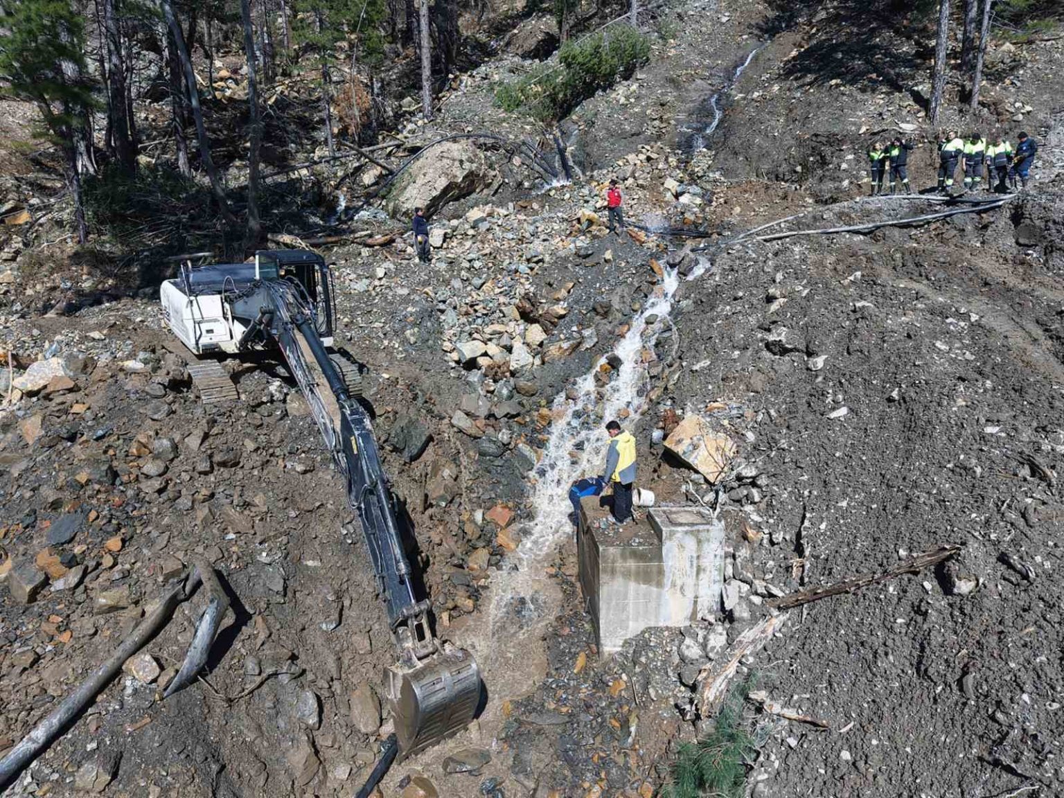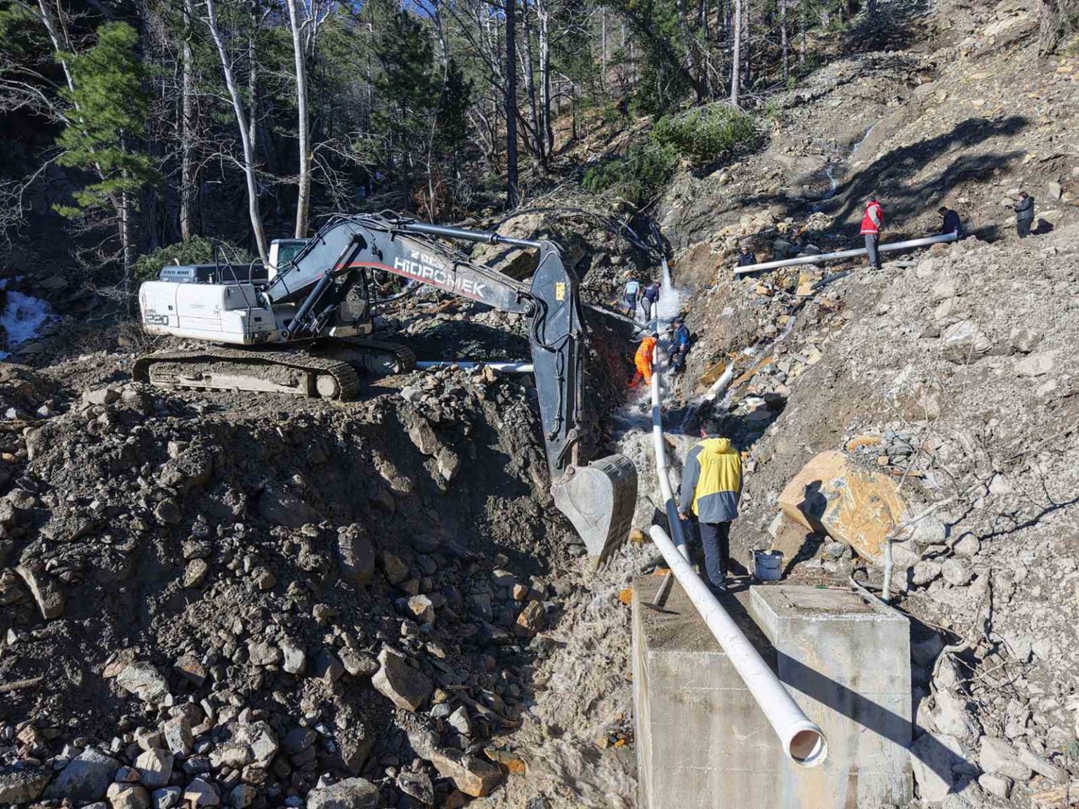 MUSKİ Genel Müdürlüğü, İşletmeler Daire Başkanlığı, Kaynak şefi Özcan Çınar, “Köyceğiz ilçesi Pınar Mahallesi ve Çayhisar Mahallesi’nin belli bölümlerini besleyen kaynaklardayız. Yoğun yağışların sebep olduğu heyelan neticesinde kopan isale hatlarımız ve kaynaklarımızın bakım onarımı için bu bölgede çalışma yapmaktayız” dedi.