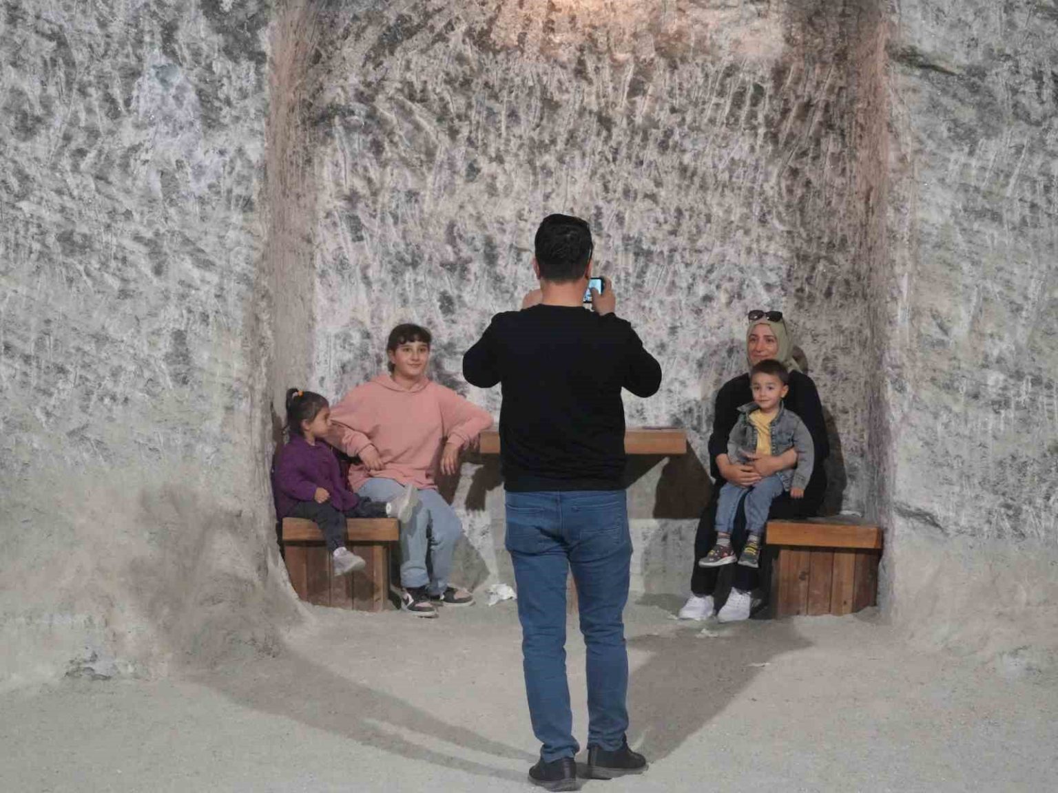 Mağarada rahat nefes aldığını belirten Zeliha Tekercioğlu, “Tuz mağarasına Ankara’dan gezmek için geldim. Burasının şifa kaynağı olduğunu da öğrendik. Burası insana huzur veriyor, nefes alışını ferahlatıyor. Güzel bir yer” ifadelerini kullandı.
