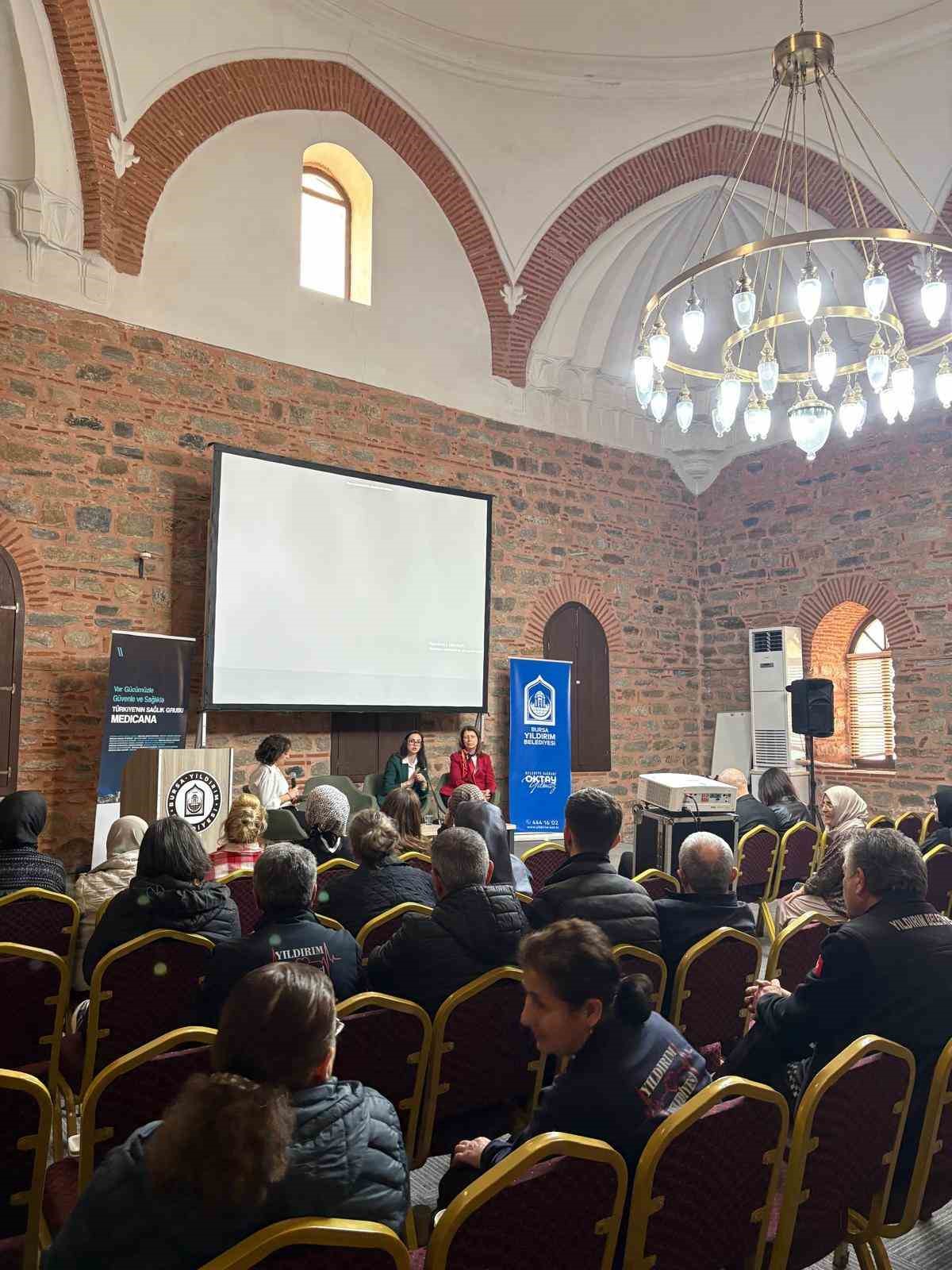 Kadın ve Aile Müdürlüğü tarafından İncirli Kültür Merkezi’nde düzenlenen ‘Kanserle Mücadele Söyleşisi’, alanında uzman isimleri ve vatandaşları bir araya getirdi. Yoğun katılımla gerçekleşen programda; Medikal Onkoloji Uzmanı Prof. Dr. Nilüfer Avcı, Psikolog Seda Nur Altuntaş ve kanser mücadeleyi kazanan Onkoloji Survivorı Sevgi Uyumaztürk, katılımcılarla bilgi ve deneyimlerini paylaştı. Mine Cansever’in moderatörlüğünü yaptığı söyleşide, kanserle mücadelede erken teşhisin önemi, tedavi süreçlerinde psikolojik desteğin rolü ve hastaların yaşam motivasyonunu artırmaya yönelik konular üstüne katılımcılar bilgilendirildi. Toplum sağlığını koruyan çalışmalara büyük önem verdiklerini belirten Yıldırım Belediye Başkanı Oktay Yılmaz, “Kanserle mücadelede en güçlü silahımız bilinç ve erken teşhistir. Bu tür hastalıklarla ilgili olarak hemşerilerimizin doğru bilgiye ulaşmasını sağlamak, farkındalık oluşturmak çok önemli. Yıldırım Belediyesi olarak sağlık alanında bilinçlendirme çalışmalarımızı kararlılıkla sürdüreceğiz. Tüm vatandaşlarımızı düzenli kontrollerini yaptırmaya davet ediyorum” ifadelerini kullandı.