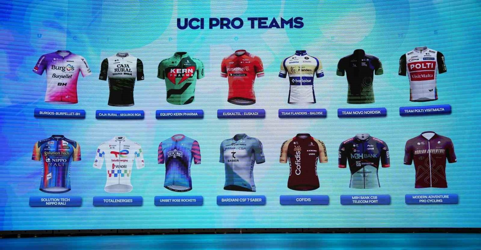 TotalEnergies (Fransa), Cofidis (Fransa), Unibet Tietema Rockets (Fransa), Caja Rural-Seguros RGA (İspanya), Burgos-BH (İspanya), Equipo Kern Pharma (İspanya), Euskaltel-Euskadi (İspanya), Bardiani CSF-Faizan (İtalya), Team Polti VisitMalta (İtalya), Solution Tech Nippo (İtalya), Team Novo Nordisk (ABD), Modern Adventure Pro Cycling (ABD), Team Flanders-Baloise (Belçika), MBH Bank Ballan CSB (Macaristan)