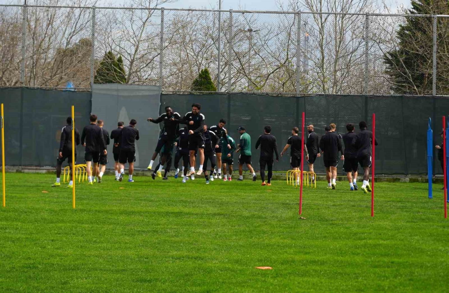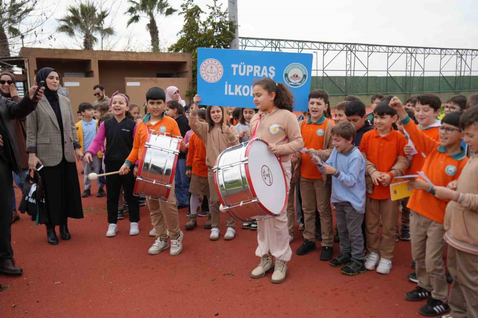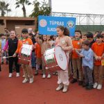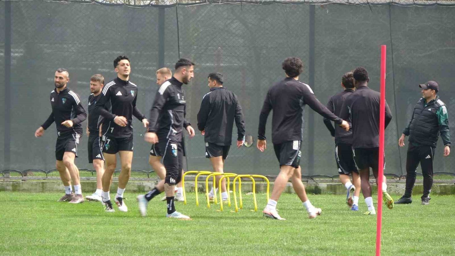 Antrenman sırasında Tüpraş İlkokulu öğrencileri, ellerinde davulla sahaya inerek, Kocaelispor için besteledikleri şiiri okudu.