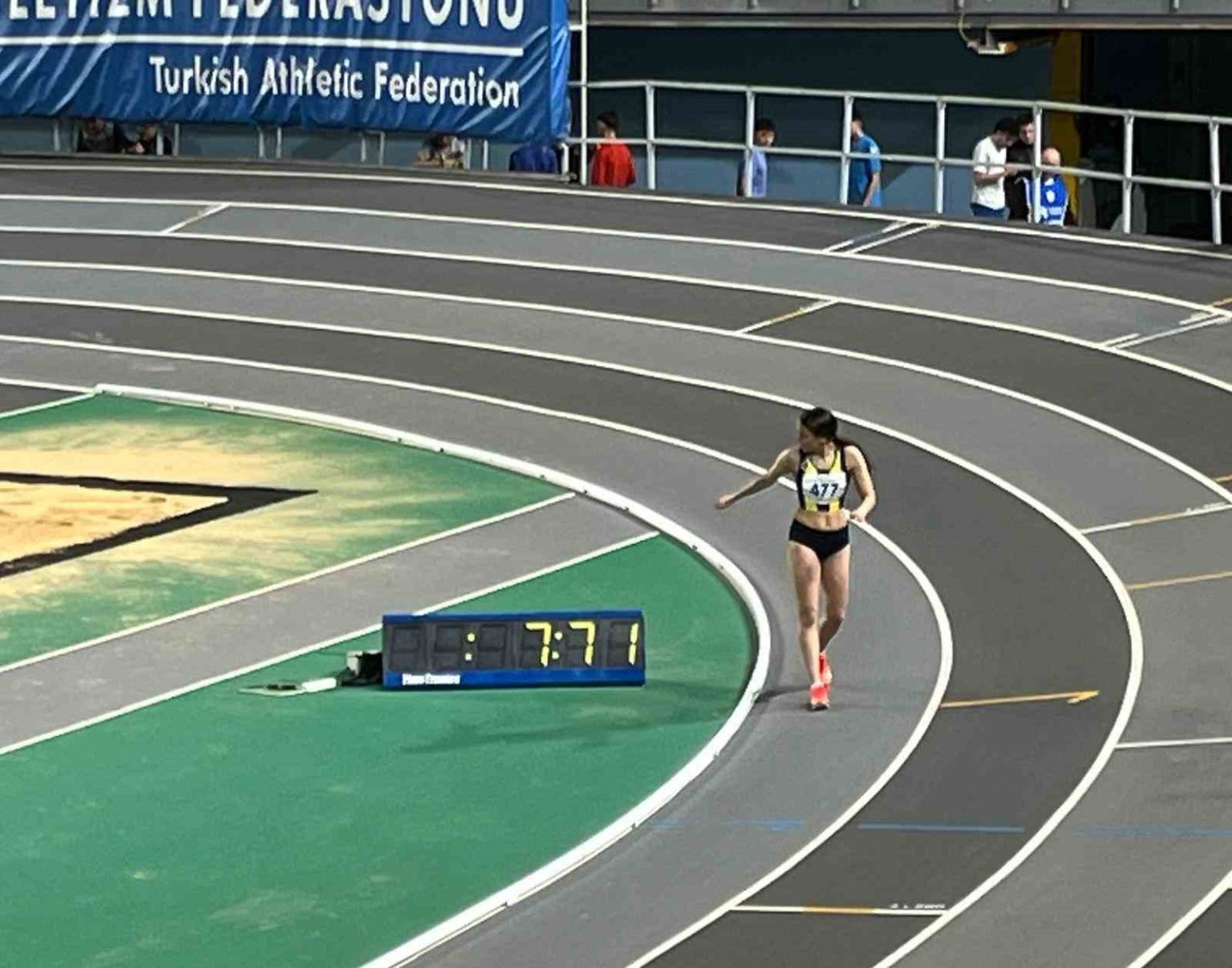 İstanbul’da düzenlenen U-20 Türkiye Salon Atletizm Şampiyonası’nda mücadele eden Sude Naz Bayar, 60 metrede Türkiye şampiyonu oldu.